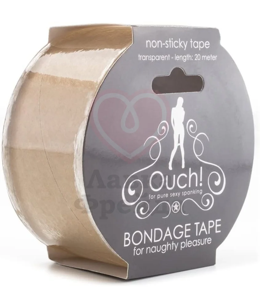 Особенная скотч-лента пригодная для безопасного бондажа: скотч липнет только к своей собственной поверхности, поэтому не оставляет неприятных следов на коже, одежде, мебели или игрушках. Чтобы выпутаться из прочных уз такого бондажа нужно, как и в случае с верёвками, необходимо размотать или разрезать ленту. Скотч выполнен из винила (ПВХ) прозрачного цвета, его длина 20 метров.