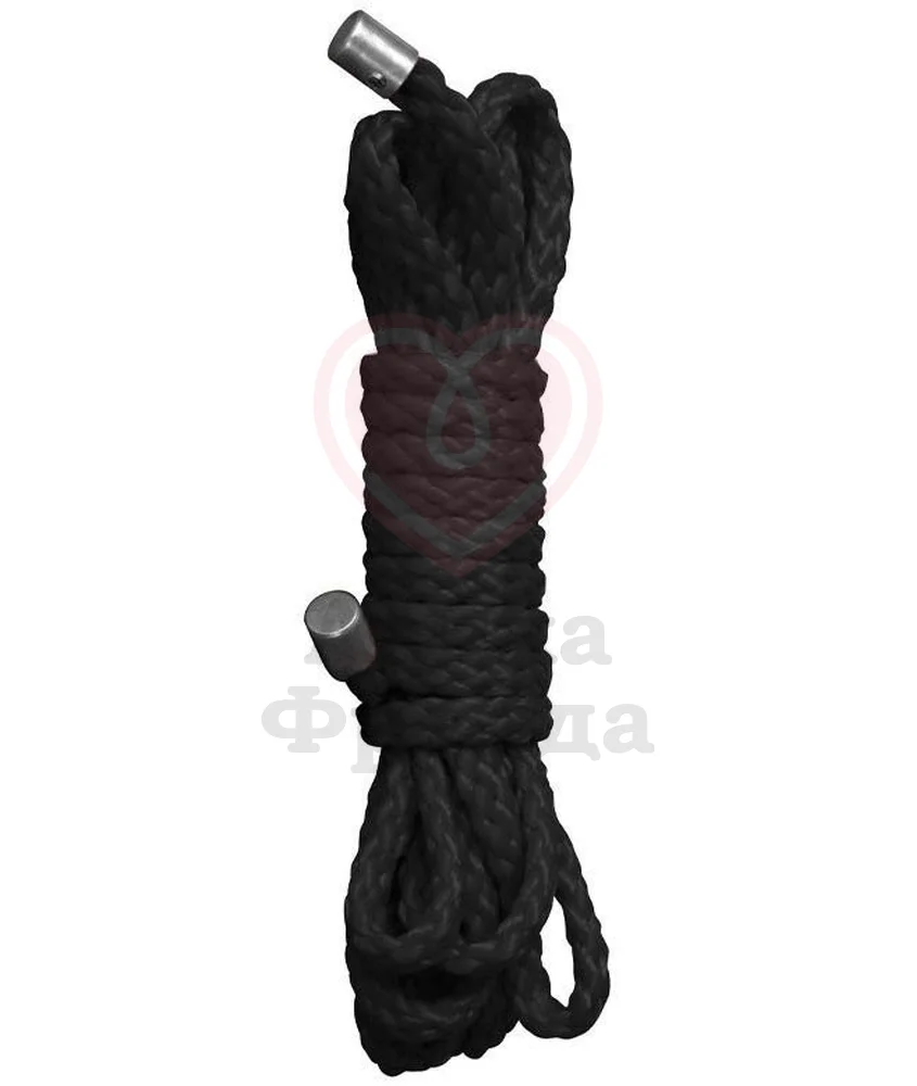 Верёвка Kinbaku Mini Rope сплетёна определённым образом из 8 нитей и обладает высокой прочностью. Длина верёвки небольшая 1,5 метра — подойдёт для мини-бондажа рук или ног. Её концы обработаны и закрыты металлическими наконечниками, чтобы она не расплеталась.