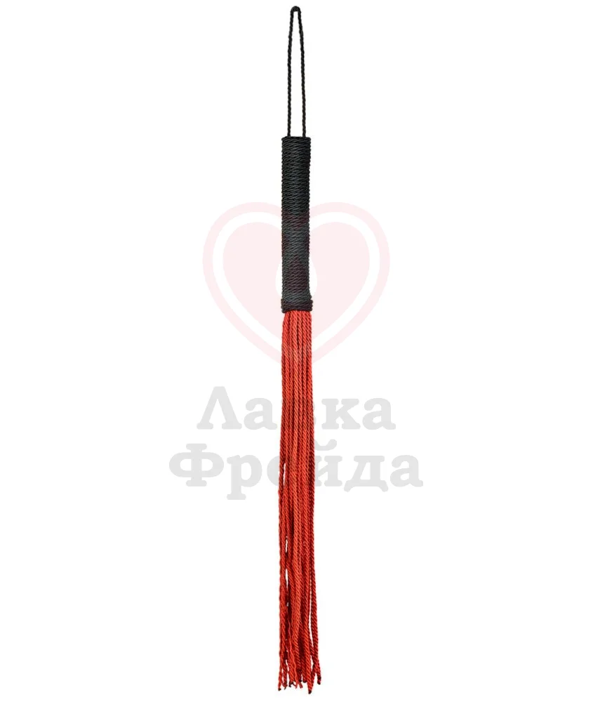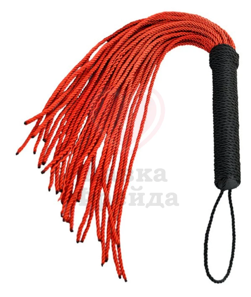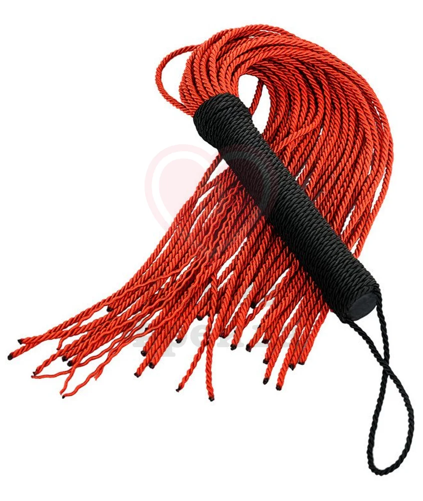 Флоггер выполнен из плетеных веревок: гибкие рельефные хвосты будут мягко разогревать кожу, подготавливая её к более сильным ударам. Ручка также покрыта текстурными веревками для более комфортного расположения в руках. На конце расположена дополнительная петелька. Общая длина 48,5 см.