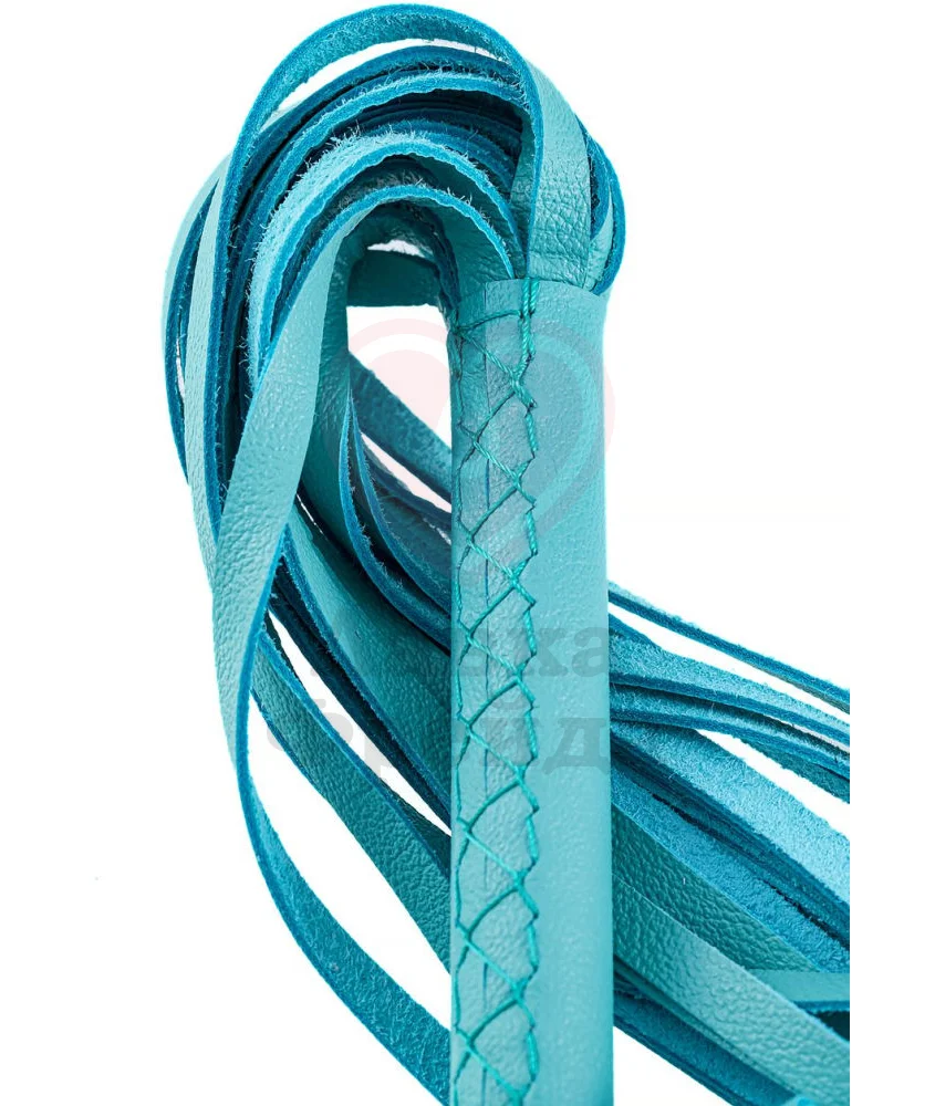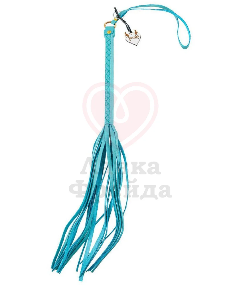 Плеть Pecado BDSM имеет плотную, плетёную кожаную рукоять, которая удобно ложится в руку, не выскальзывая из ладони даже при интенсивном движении. Петлю, находящуюся на конце рукоятки, можно надеть на запястье, надёжнее зафиксировав изделие. Хвостовая часть состоит из ярко-голубых узких лент, сделанных из прочной натуральной кожи - безопасный экологичный материал, устойчивый к механическим повреждениям.