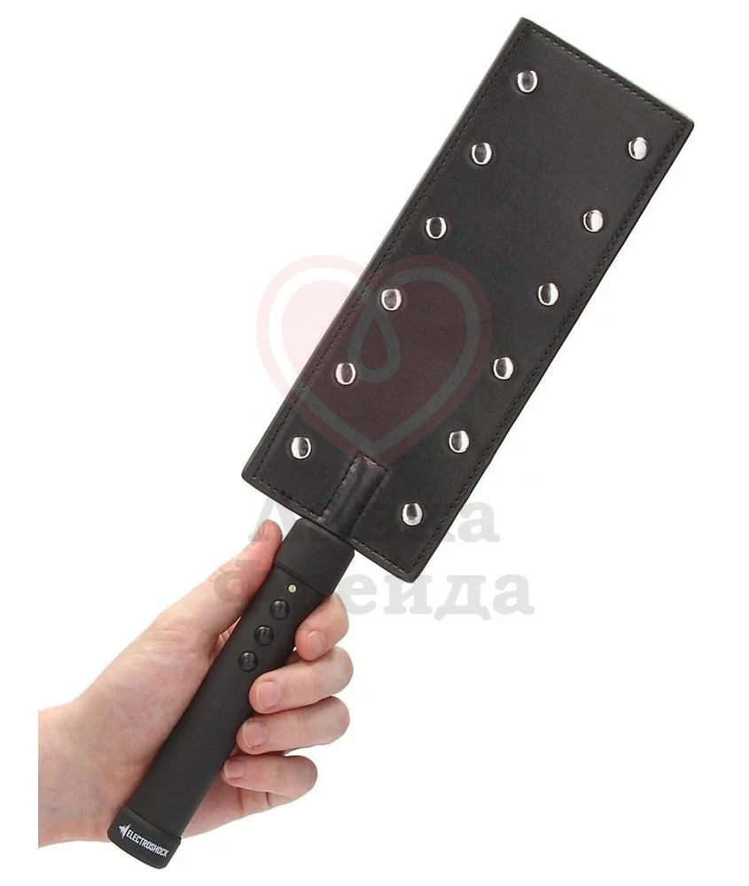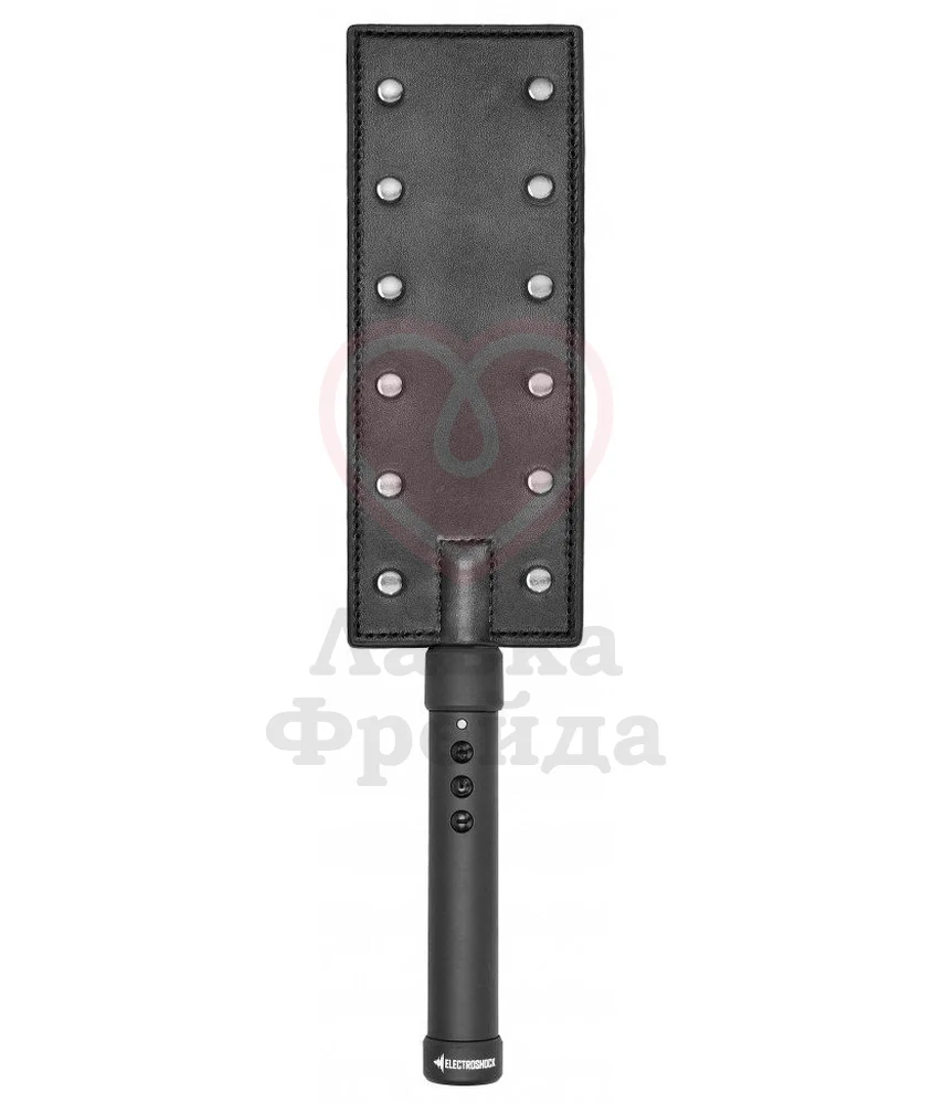 Паддл с электростимуляцией из серии Shots Electroshock — удовольствие для ценителей острых ощущений. Шлепалка оснащена 12 металлическими кнопками для передачи электрических импульсов. Управлять игрушкой крайне просто при помощи 3 кнопок на ручке. При включении игрушка имеет среднюю мощность воздействия в 240В, вы сможете снизить или увеличить её в зависимости от пожеланий: самый слабый режим имеет силу 142В, а самый сильный — 312В.