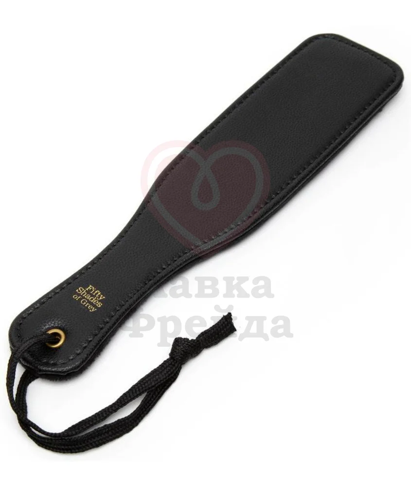 С другой стороны - искусственная кожа - более жесткий и более стройгий материал, который хорошо подойдет для чувственного наказания. На ручке расположена петелька для надежного расположения на запястье. Коллекция Bound to You приурочена к 10-летию бренда Fifty Shades of Grey.