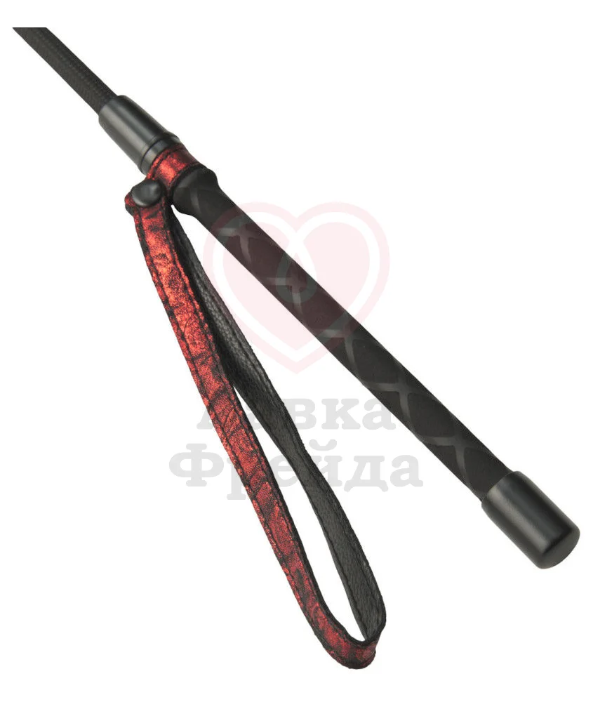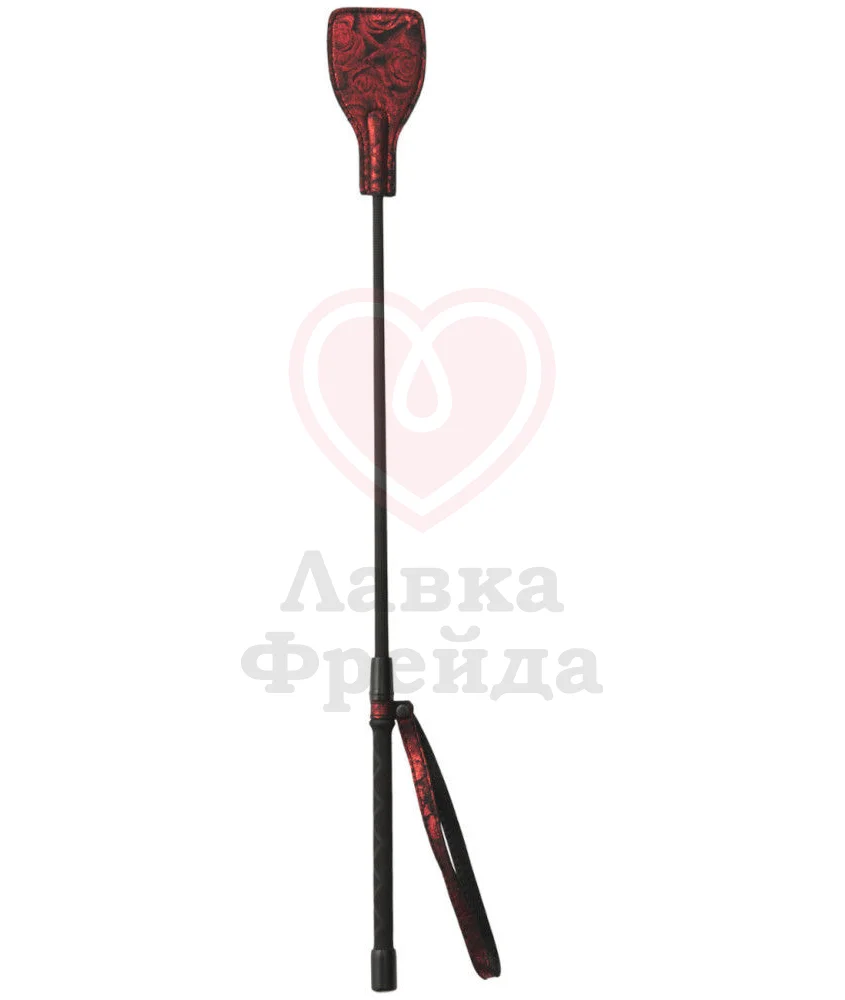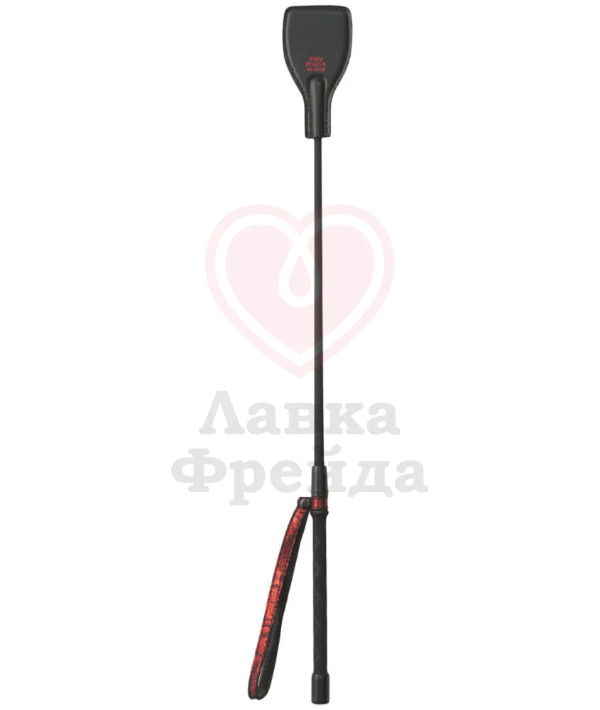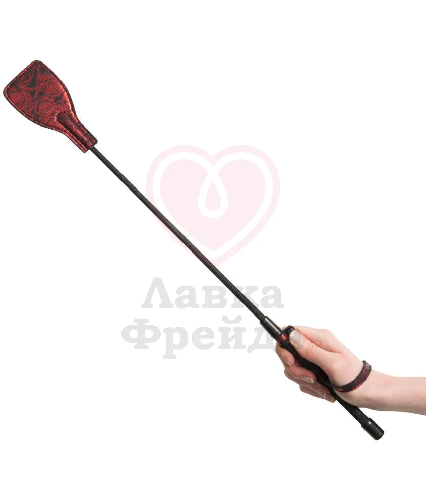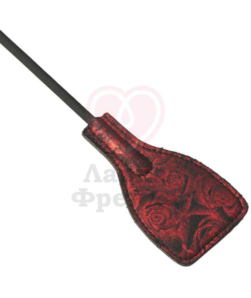 Стек Fifty Shades of Grey Sweet Anticipation сочетает в себя две стороны — черную искусственную кожу и яркий принт с красными розами. Упругий стержень обеспечивает хлесткость ударов, подходящую для игривого наказания. Общая длина стека - 57 см, длина ударной части — 11 см. На ручке находится петелька для запястья, чтобы стек было удобно использовать и хранить.