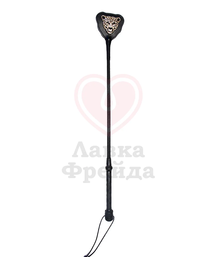 Стек 53 см с кожаным шлепком и украшением в виде головы леопарда.