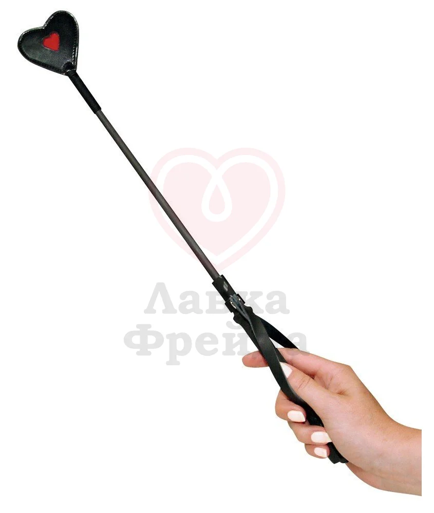 Стек с наконечником в виде сердечка не только покажет вашу любовь, но и кто здесь хозяин или хозяйка. Основа аксессуара выполнена из гибкого пластика, а ручка имеет удобную петлю для использования. Общая длина 45 см. В составе используются разнообразные материалы: полиуретан, поливинилхлорид, а также полиэстер.