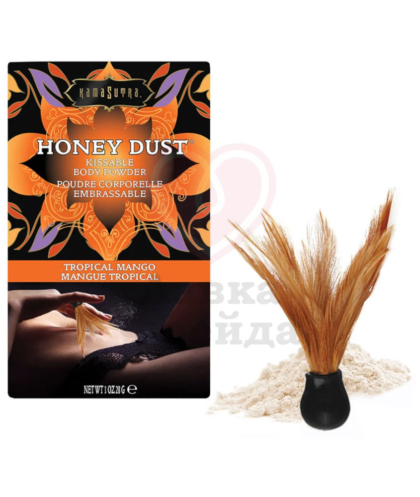 Пудра подходит для использования на любых участках тела: распределите её тонким слоем, как волшебную пыльцу, а затем потрогайте, поцелуйте или оближите тело партнера. Версия Honey Dust Body Powder Tropical Mango - яркий экзотический фрукт, покоряющий своей сладостью, удержаться от прикосновений невозможно!