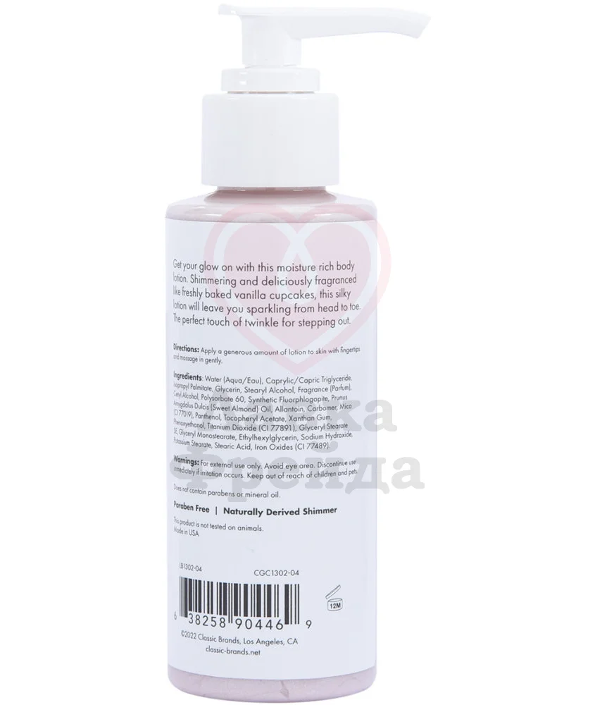 Нежный лосьон для тела CG GLOW Vanilla Cupcake Shimmer Lotion украсит вашу кожу сияющим розовым блеском, дополняя как легкий и воздушный образ для дневных прогулок, так и яркий и дерзкий для вечерних тусовок. Помимо сияния, средство подарит вашей коже аромат вкусных кексов с ванилью, которые будто только что достали из духовки. В составе средства находится масло сладкого миндаля, пантенол, витамин Е и аллантоин, комбинация которых делает кожу мягкой и напитанной.