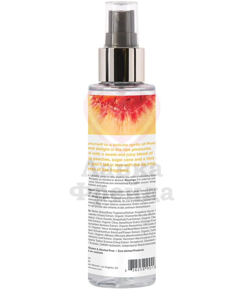 Спрей-мист Coochy Peachy Keen имеет в формуле экстракты растений, фруктов и витаминов, комбинация которых защищают кожу от УФ-излучения, увлажняют её, снимают раздражение после бритья или шугаринга, а также предотвращают врастание волос. Помимо этого, мист дарит коже сладкий аромат спелых персиков, оттененных ванилью и сахарным тростником. Чтобы использовать спрей, его достаточно немного распылить на чистые волосы или тело. Средство достаточно мягкое, чтобы не раздражать даже самую чувствительную кожу.