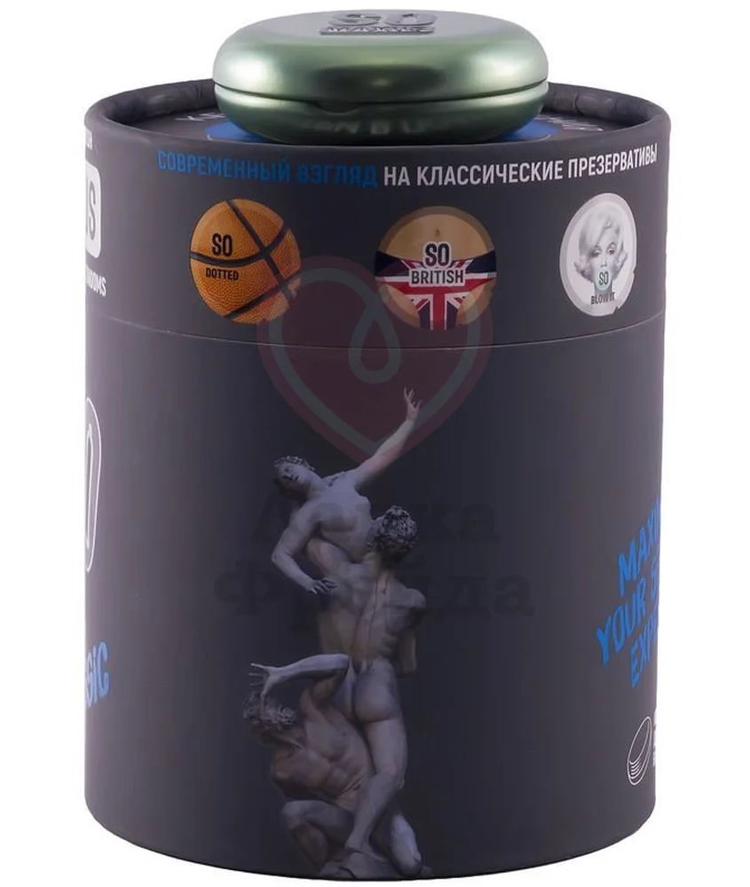 В наборе So Much Sex находится 100 штук, а чтобы их было удобнее брать с собой в комплект также входит дополнительный компактный металлический кейс. Таким образом индивидуальная упаковка презервативов не деформируется в кармане или сумке и всегда под рукой в нужный момент. Цвет кейса и дизайн упаковки презервативов может отличаться от представленных на фото.
