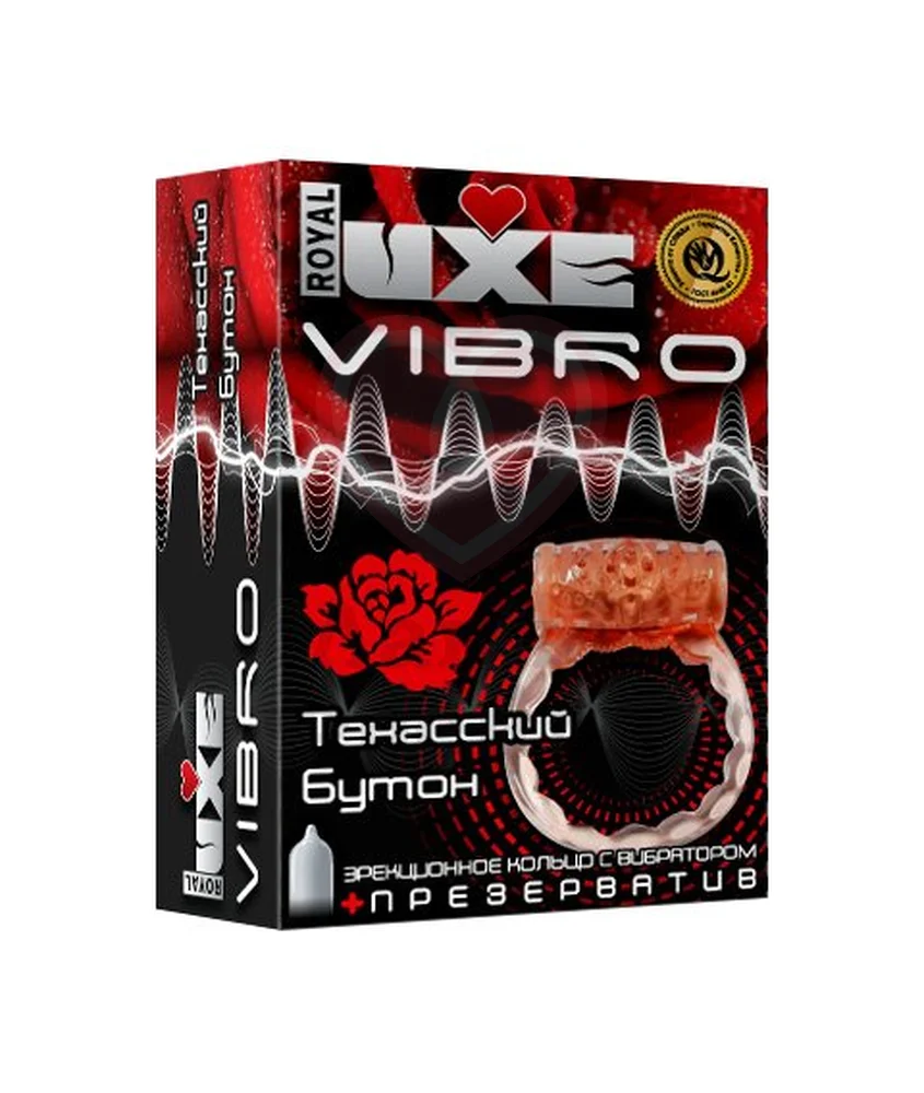 Luxe Vibro Техасский бутон - это набор из классического презерватива и виброкольца для незабываемой ночи и продолжительного секса. Презерватив толщиной 0,07 мм обеспечит вам надежную защиту даже во время интенсивного полового акта.