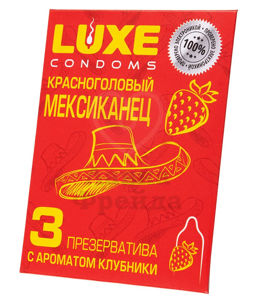 Презервативы Luxe Красноголовый мексиканец – это классическая форма, дополненная ароматом клубники, качественное решение для удовольствия и безопасного секса с партнером. Длина составляет 18 см, толщина стенок 0,06 мм. Презервативы изготовлены из латекса с силиконовой смазкой и протестированы при помощи электроники. В упаковке-конверте находится 3 презерватива с гладкой поверхностью. Ароматизированный вариант отлично подходит, чтобы разнообразить ваши впечатления от привычной близости, а также сделать её ещё приятнее.