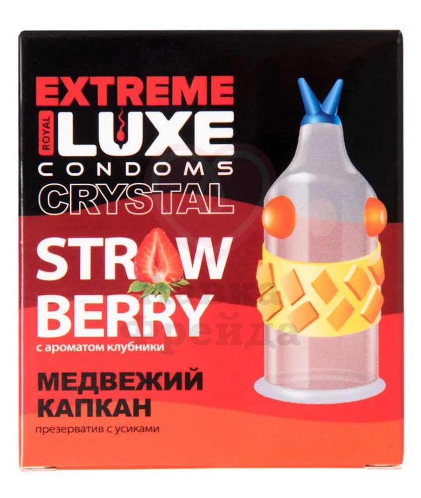 Презерватив Luxe Extreme Медвежий Капкан с ароматом клубники создан для безопасного секса, дополненного необычным ощущениями за счет рельефных вставок и усиков, расположенных ближе к кончику. Презерватив выполнен из натурального прозрачного латекса, имеет стандартную длину в 18 см и толщину стенок 0,06 мм.