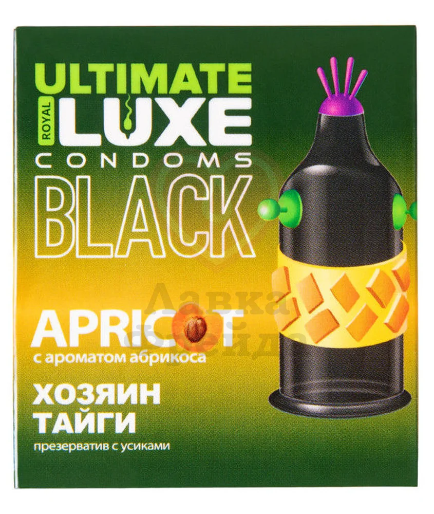 Презерватив Luxe Ultimate Black Хозяин Тайги с ароматом абрикоса создан для безопасного секса, дополненного необычным ощущениями за счет рельефных вставок и усиков, расположенных ближе к кончику. Презерватив выполнен из натурального черного латекса, имеет стандартную длину в 18 см и толщину стенок 0,06 мм.