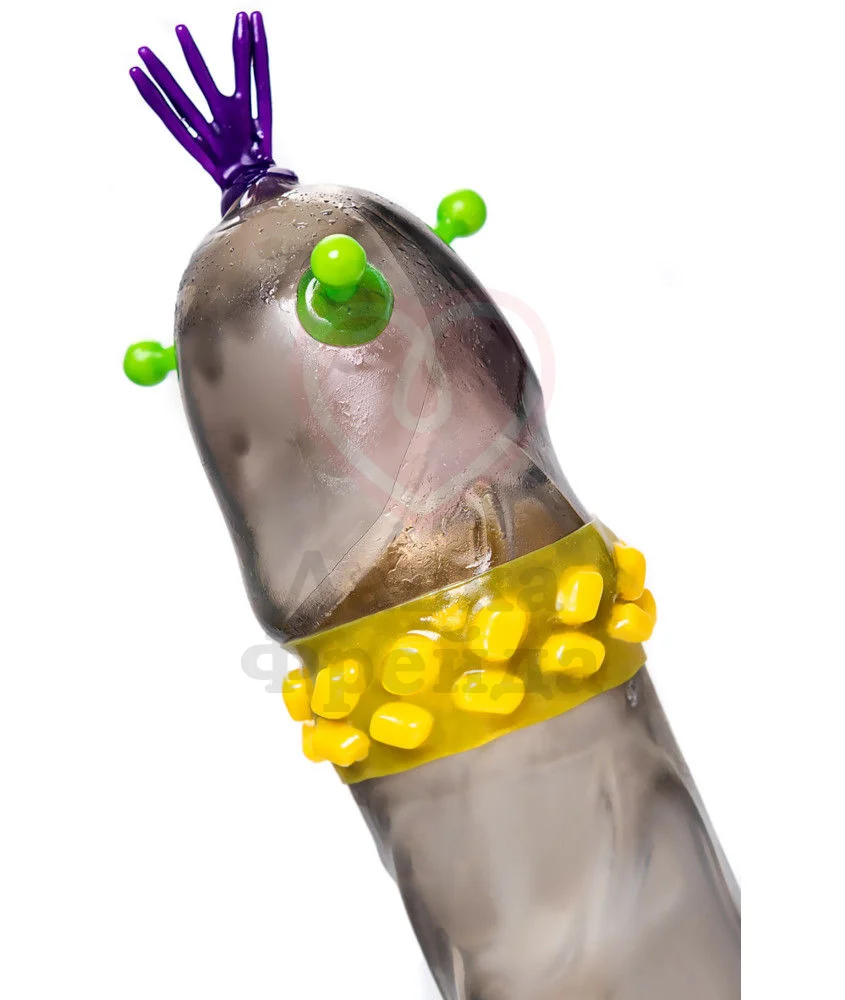 Классическая форма обладает экстремально-необычным дизайном с точками и усиками для особой стимуляции. А ненавязчивый сладкий аромат сделает вашу близость ещё более приятной. Такие презервативы лучше всего использовать с дополнительным лубрикантом для максимально комфортных ощущений обоих партнеров.