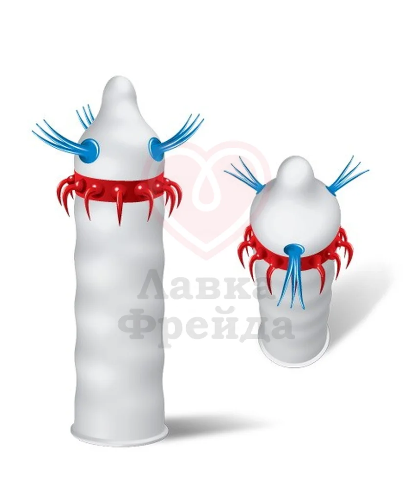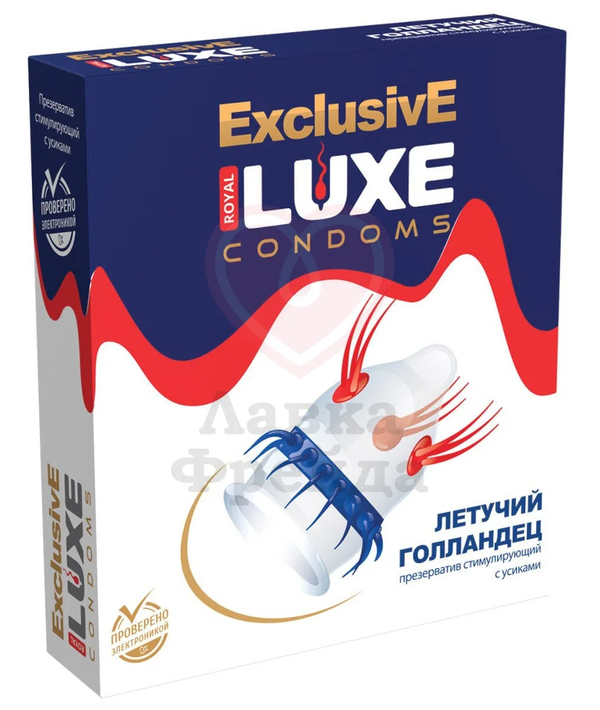Необычный презерватив Luxe exclusive Летучий голландец доставит незабываемое удовольствие женщине, ведь в нем есть целых 2 дополнения. Голубые пучки усиков ближе к головке приятно стимулируют и поглаживают, а красный ободок эластичных кончиков, направленных в противоположную сторону движения, создает волны мурашек по всему телу.