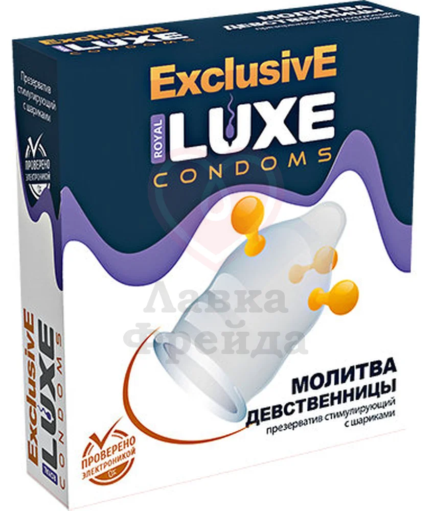 Необычный презерватив Luxe exclusive Молитва девственницы доставит незабываемое удовольствие женщине, ведь в нем есть интересное дополнение. 3 выпуклых нежных шарика ближе к головке приятно стимулируют при каждом движении и создают волны мурашек по всему телу.