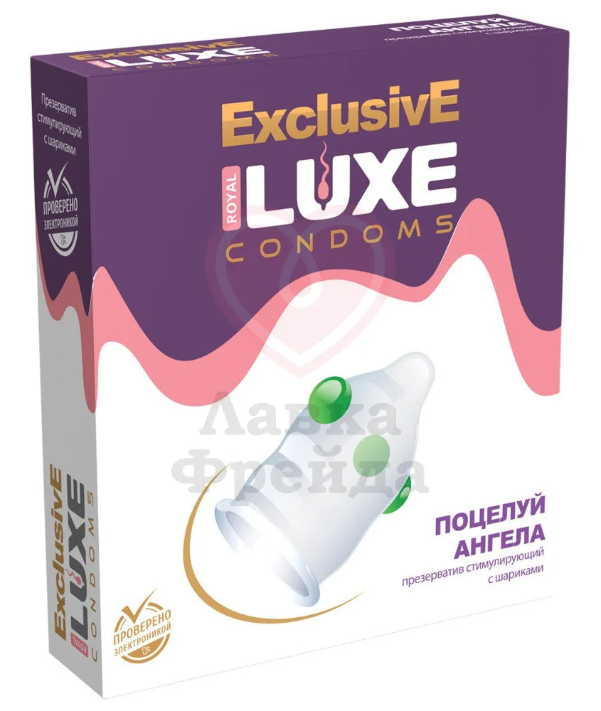Необычный презерватив Luxe exclusive Поцелуй ангела доставит незабываемое удовольствие женщине, ведь в нем есть интересное дополнение. 3 выпуклых нежных шарика ближе к головке приятно стимулируют при каждом движении и создают волны мурашек по всему телу.