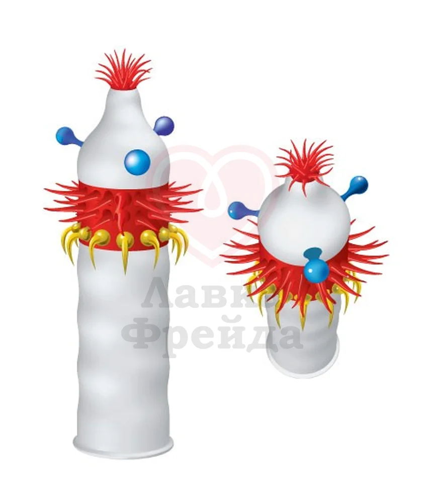 Необычный презерватив Luxe maxima Аризонский Бульдог доставит незабываемое удовольствие женщине, ведь в нем есть целых 3 дополнения. Пучок красных усиков на накопителе приятно стимулирует при глубоком проникновении, выпуклые синие шарики ласкают при каждом движении, а красно-жёлтый ободок эластичных усиков, направленных в разную сторону, создает волны мурашек по всему телу.