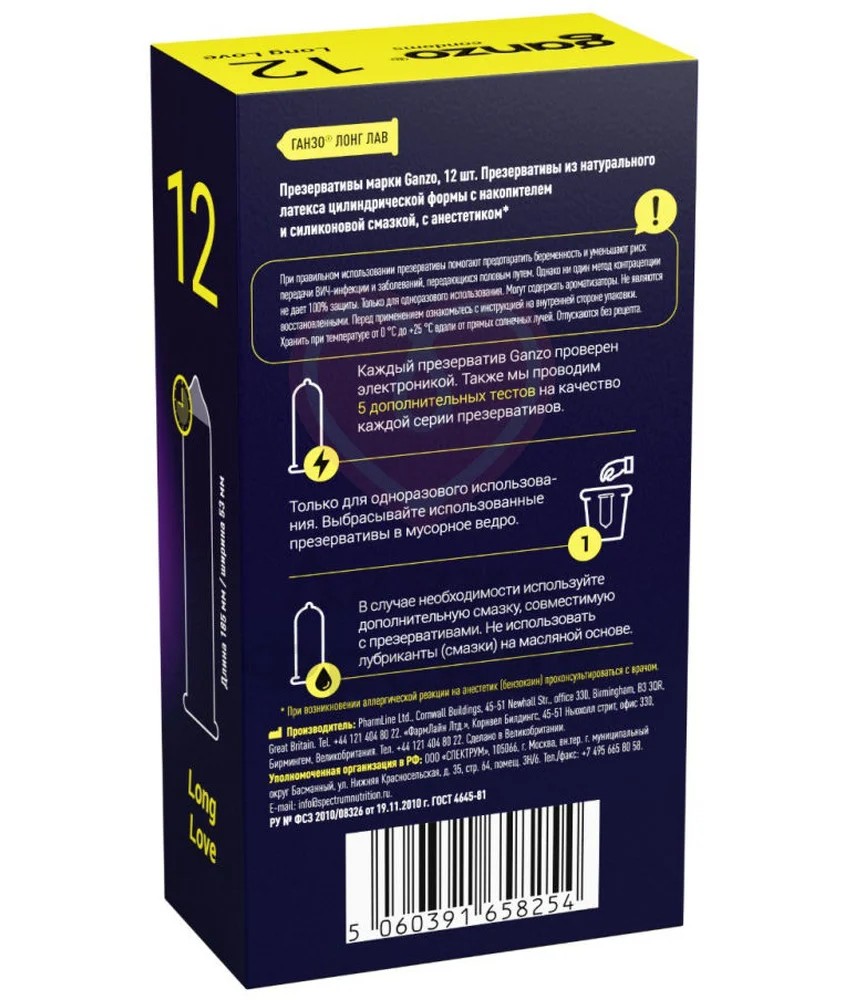 Презервативы Ganzo Long Love с анестетиком помогут продлить половой акт и получить еще больше удовольствия от близости. Выполнены из натурального латекса с накопителем и обильной силиконовой смазкой. В упаковке 12 презервативов, качество которых проверено электроникой.