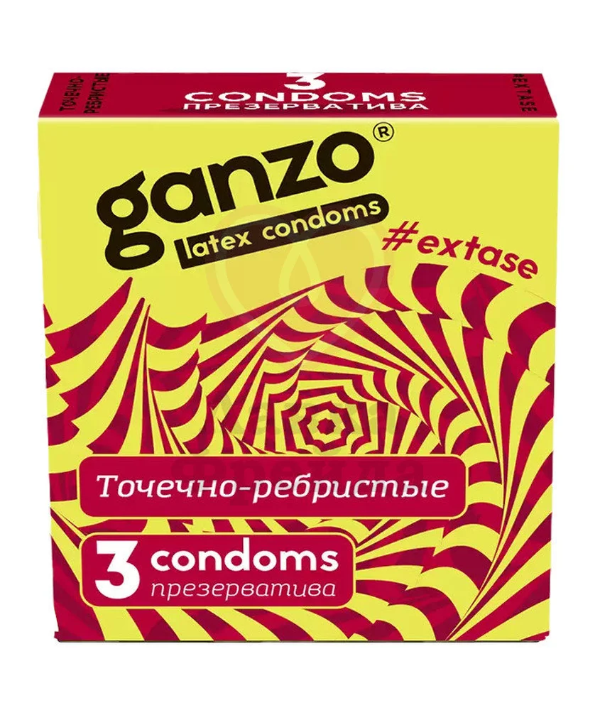 Презервативы Ganzo Extase анатомической формы имеют точечную и ребристую поверхность для максимальной стимуляции партнерши. Выполнены из натурального латекса с накопителем и обильной силиконовой смазкой. В упаковке 3 презерватива, качество которых проверено электроникой.