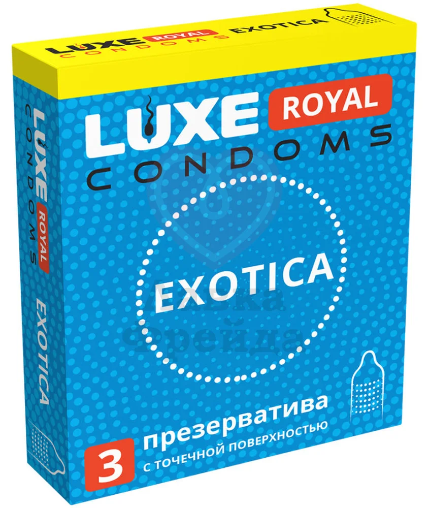 Luxe Royal Exotica — высококачественные презервативы с точечной рельефной поверхностью, созданные для ярких ощущений и разнообразия в интимной жизни. Структура с точками усиливает стимуляцию, добавляя вашим отношениям новые эмоции и повышая чувственность во время близости. Презервативы изготовлены из прочного и эластичного латекса, обеспечивающего надежность, комфорт и естественные ощущения.