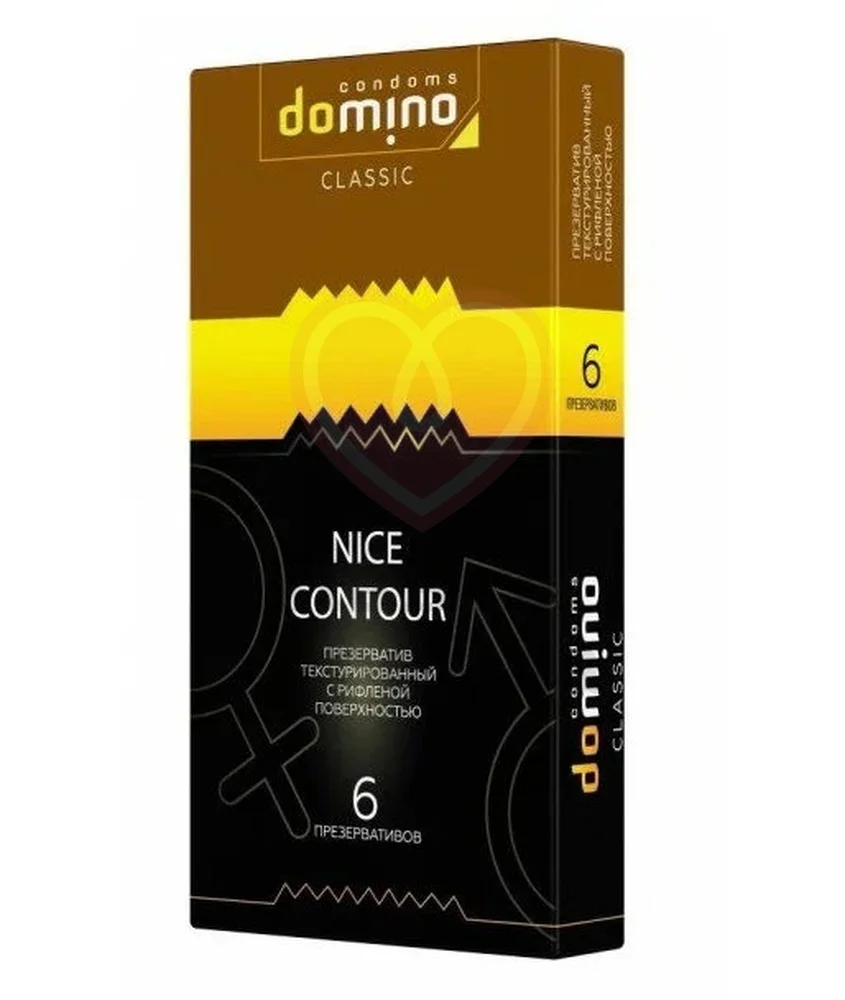 Domino Classic Nice Contour - классические презервативы с рифленой поверхностью, которая стимулирует чувствительные интимные зоны у обоих партнеров. Каждый контрацептив имеет слой нанесенного лубриканта на силиконовой основе. Эта смазка гипоаллергенная, не имеет запаха и не оставляет пятен на одежде. Прочность контрацептивов соответствует европейским стандартам, что гарантирует высокую степень защиты.