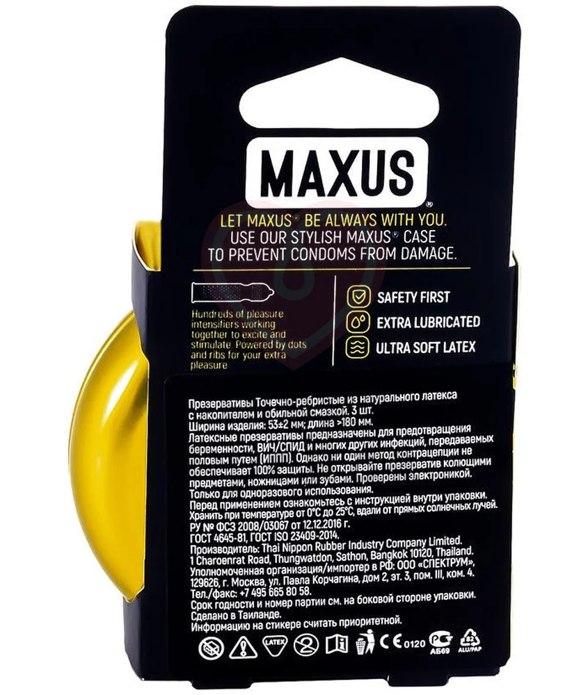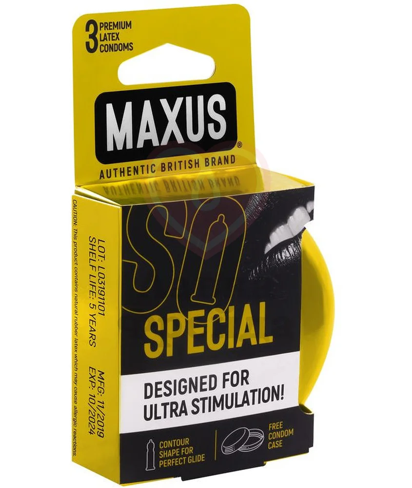 Компания Maxus сочетает в своей продукции стильный дизайн и английское качество. Три презерватива в ярких упаковках с рисунками находятся внутри круглого металлического кейса, который легко открывается и закрывается. Сами же презервативы изготовлены из мягкого латекса и увлажнены смазкой. Эта версия с точками и рёбрышками создана, чтобы добавить дополнительную стимуляцию вашему партнёру. Цвет кейса и дизайн упаковки презервативов может отличаться от представленных на фото.