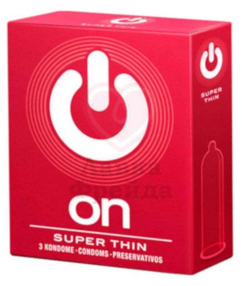 Презервативы On – это немецкие презервативы высокого качества соответствующие всем европейским стандартам, что обеспечивает исключительную надежность и незабываемые ощущения. Исключительное качество латекса дает чувство комфорта. Лубрикант не имеет запаха, не оставляет следов на одежде, не вызывает раздражение на коже и аллергических реакций. Презервативы On Super Thin (ультратонкие) Ультратонкие презервативы классической формы, с силиконовым лубрикантом и накопителем.
