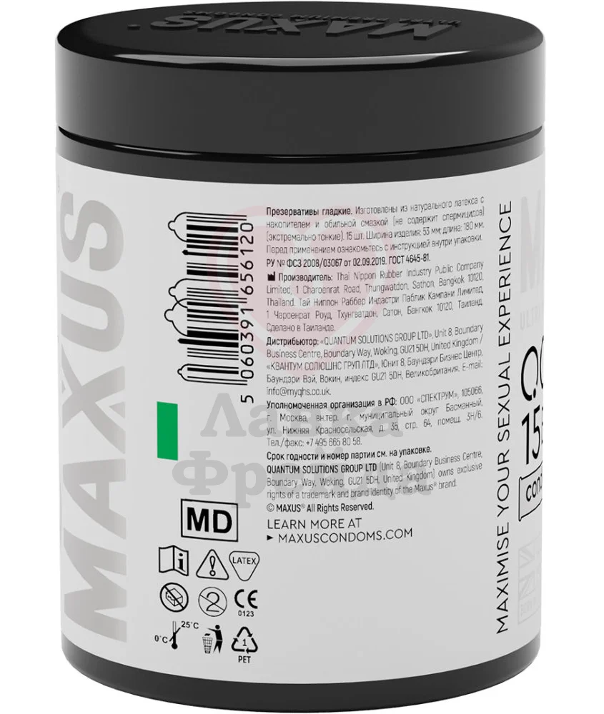 Презервативы Maxus 003 Extra Thin - набор из 15 ультратонких презервативов, сделанных из качественного натурального латекса, что обеспечивает не только максимально комфортное прилегание, но и повышенную чувствительность члена. В наборе вас ждет изящная стальная кондомница, вмещающая в себя три контрацептива. Каждый презерватив имеет вместительный накопитель и обильный слой лубриканта, облегчающий проникновение.