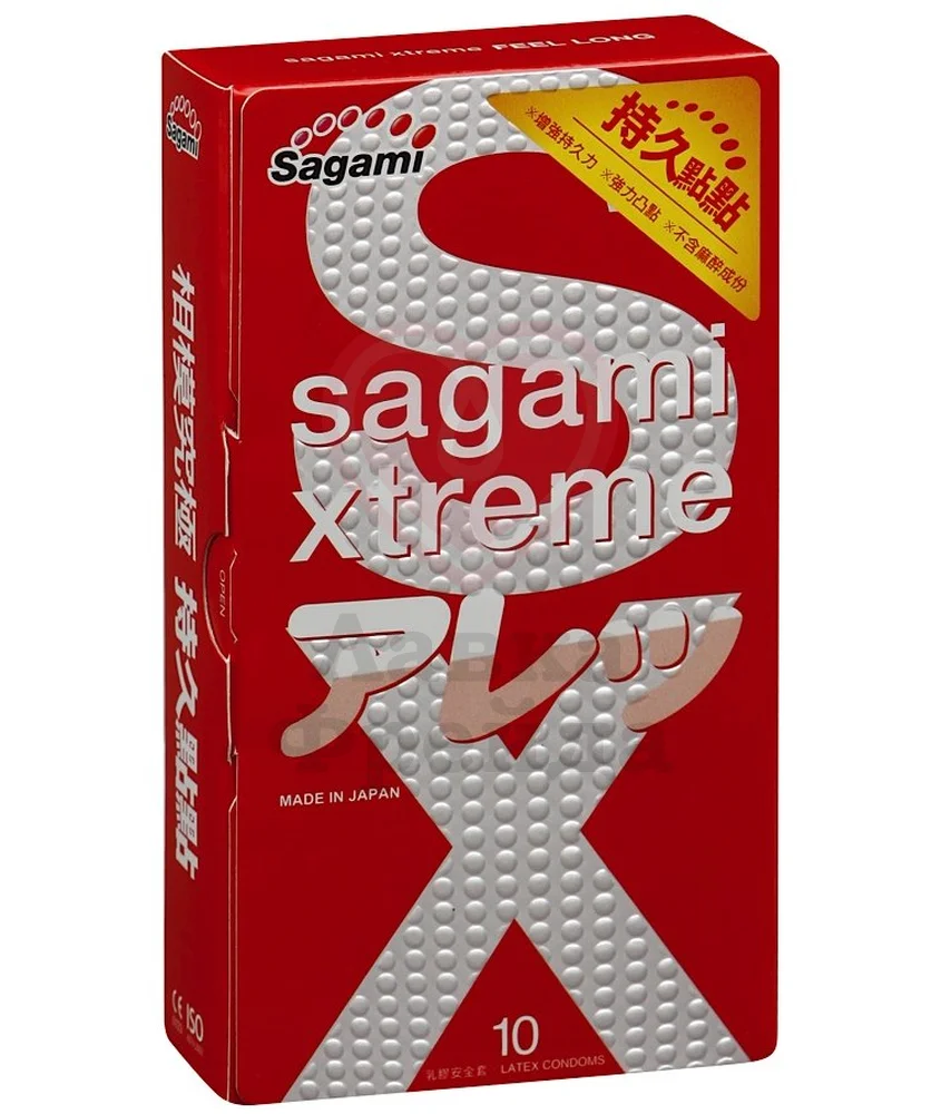 Sagami Xtreme Feel Long - продлевающие презервативы с точечным рельефом, изготовленные из натурального латекса. Их уникальность заключается в применении передовых технологий, которые позволили изготовить продлевающие презервативы без добавления в смазку анестетиков (лидокаина и бензокаина), что делает их безопасными для ежедневного применения. Для очень чувствительных мужчин или для партнеров требовательных дам. Они помогут Вам всегда оставаться на высоте и продлить Ваше удовольствие!