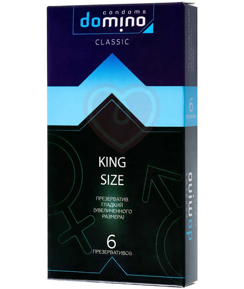 Гладкие презервативы Domino King Size - защита размера кинг сайз, для по-настоящему больших парней. В упаковке находится 6 контрацептивов, имеющих вместительный накопитель для спермы и густой слой лубриканта на основе силикона. Такая смазка не вызывает аллергических реакций, не обладает ярко-выраженным ароматом и не оставляет пятен на одежде и постельном белье. Прочность контрацептивов соответствует европейским стандартам, что гарантирует высокую степень защиты.