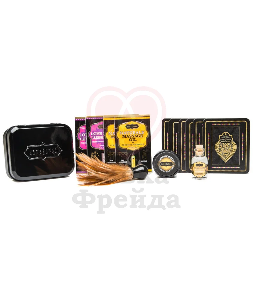 Набор эротической косметики KamaSutra - идеальный вариант для путешествия: несколько ароматных и приятных средств для тела скрасят ваш романтический вечер с партнером. Миниатюры фирменных средств упакованны в небольшую металлическую баночку, которая поместится в любую сумочку. Набор отлично подойдет в качестве знакомства с косметикой KamaSutra, а также станет прекрасным подарком для влюбленной пары.
