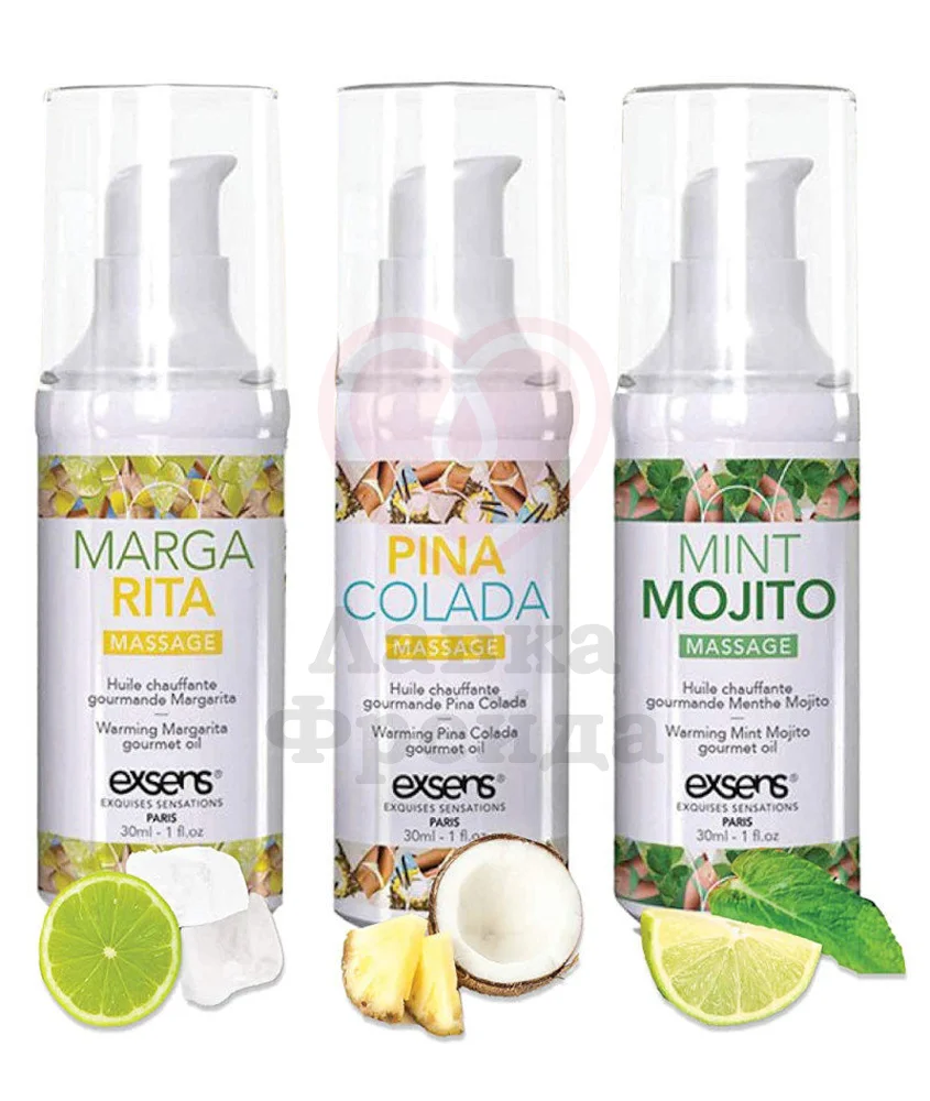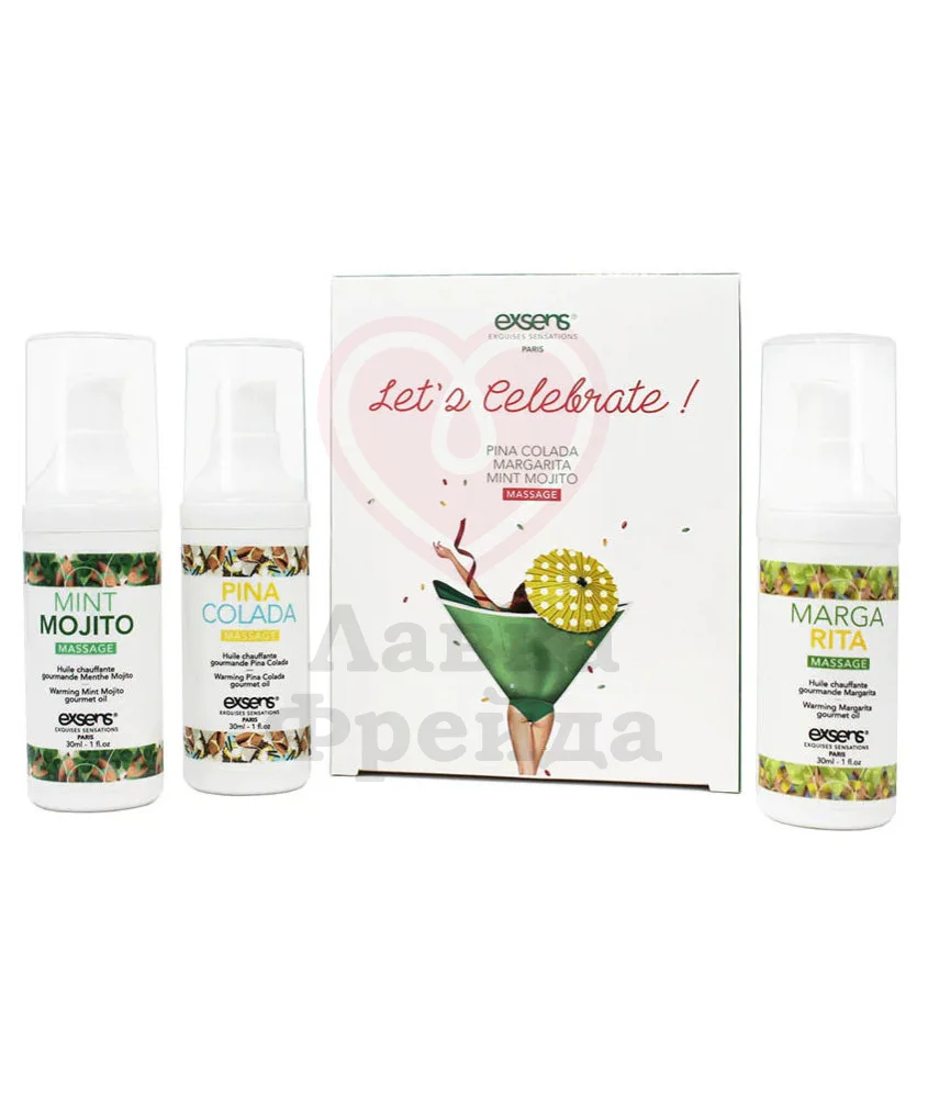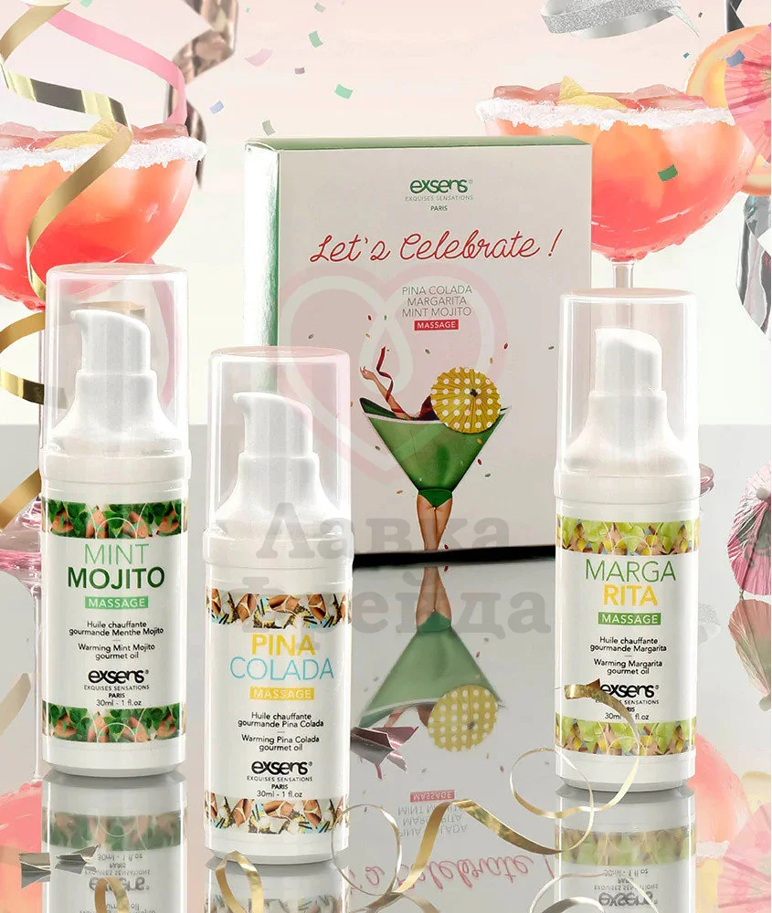 Набор массажных гелей Exsens Let's Celebrate подойдет для яркого и вкусного вечера с любимым партнером: состав идеален для коктейльной вечеринки на двоих, но без грамма сахара или алкоголя! Средства созданы, чтобы улучшить и усилить ваши впечатления от массажа или орального секса. Просто нанесите гель на кожу и на интимные части тела в том числе, распределите массажными движениями, а затем целуйте и слизывайте приятную сладость с тела партнера. При контакте с дыханием гель создает легкий согревающий эффект для наибольшего возбуждения.