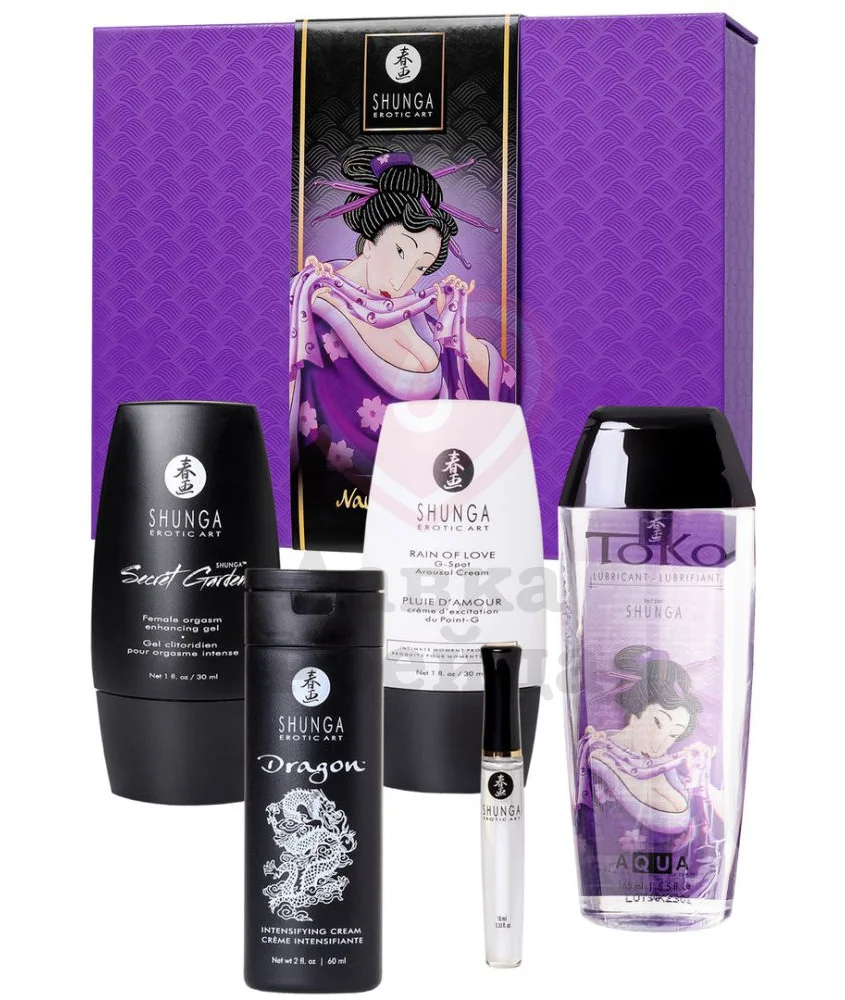 Набор Shunga Naughter состоит из пяти полноразмерных косметических средств, с помощью которых вы сможете внести в сексуальную жизнь еще больше огня и чувственности: