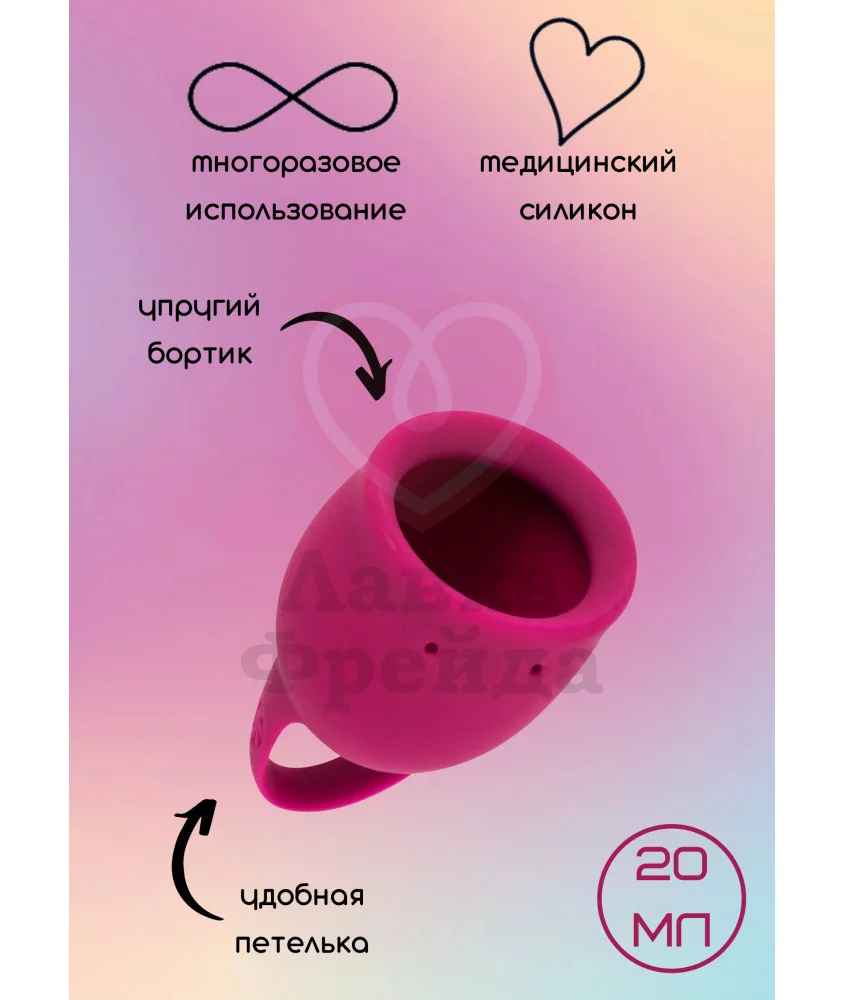 Менструальная чаша Lola Natural Wellness объемом 20 мл отлично подойдет в качестве удобной и экологичной альтернативы прокладкам и тампонам. Одна такая чаша заменяет огромное количество средств женской гигиены, а срок её использования может составлять до десяти лет. Она выполнена из медицинского силикона и имеет специальную форму с упругим бортиком сверху и удобной петелькой снизу для максимально комфортного применения. Носить чашу можно в течение дня, ополаскивая её каждые 8-12 часов. С ней можно вести активный образ жизни — заниматься спортом, ходить на плавание и не переживать о ней ночью: правильно расположенная чаша совершенно не ощущается внутри и сохраняет вас от протеканий.