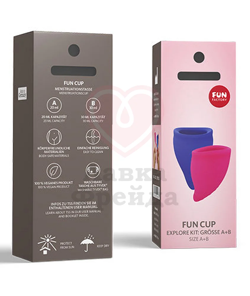 Не уверены, какой Fun Cup вам подойдет? Проконсультируйтесь с гинекологом или просто возьмите набор Explore Kit, который включает себя оба размера. Интересный лайфхак: набор Explore Kit будет удобен также в том случае, если в первые дни у вас сильное кровотечение. Просто используйте вначале чашу B, а в последующие дни замените её на размер А.