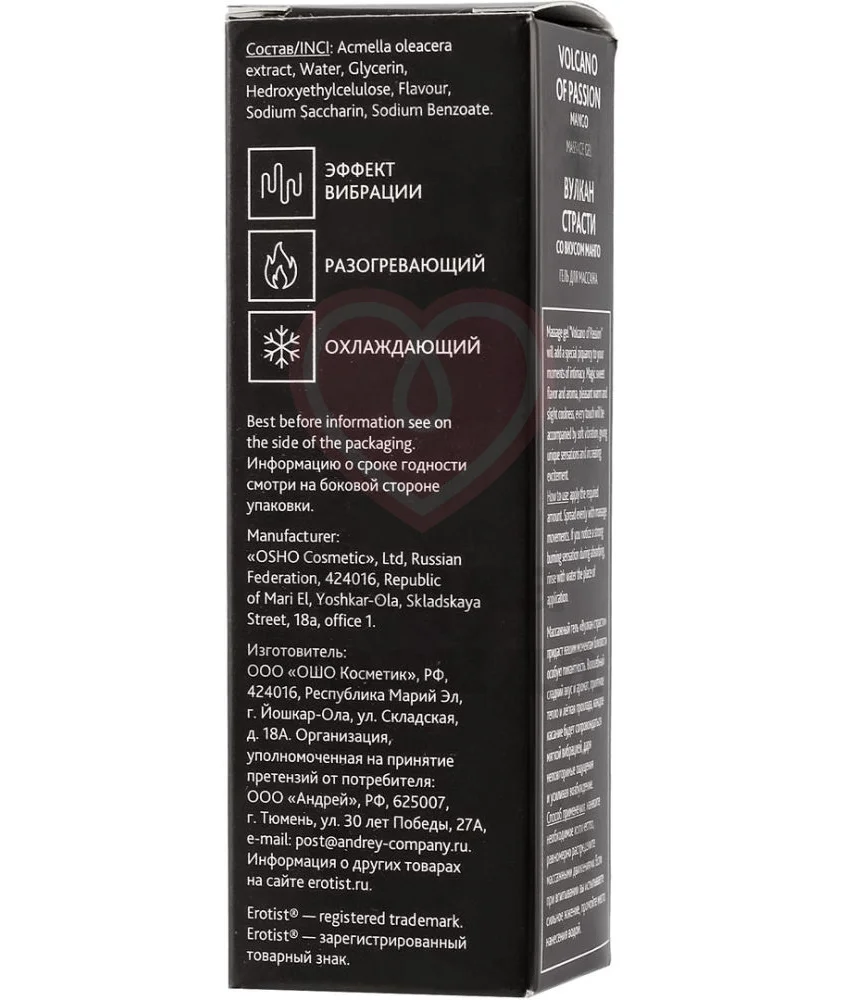 При нанесении на эрогенные зоны, вы почувствуете приятное тепло, сменяемое лёгкой вибраций, покалывающими мурашками и холодком - ощущения, длительность которых зависит от индивидуальной реакции организма. Если есть склонность к аллергии, перед первым использованием заранее опробуйте средство на маленьком участке кожи.