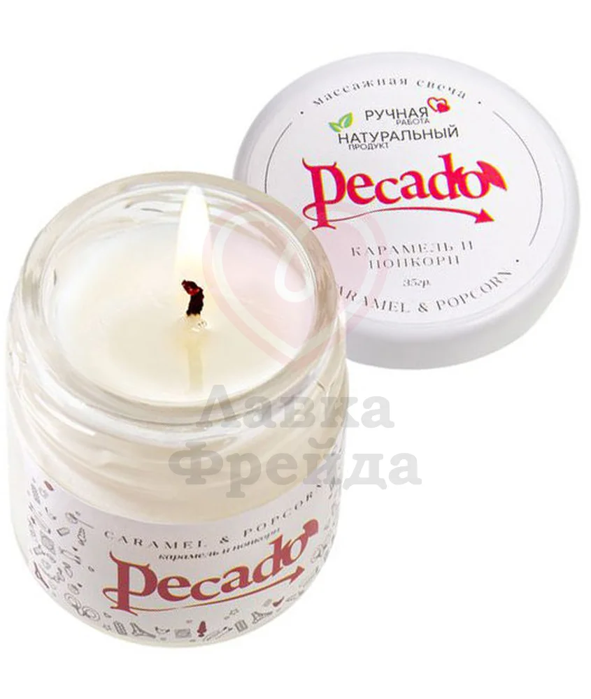 Свеча Pecado BDSM Caramel Popcorn со сладким ароматом карамели и попкорна идеально подходит для эротического массажа и чувственной прелюдии перед сексом. Чтобы использовать, свечу необходимо зажечь, подождать пока растопится немного воска, потушить пламя, а затем вылить жидкость или на тело партнера или себе в ладони.