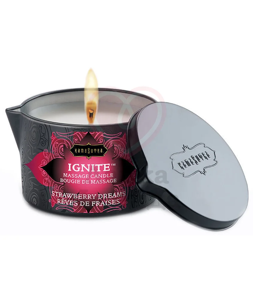 Массажная свеча KamaSutra Ignite обладает особенной формулой с добавлением масла кокоса и ши, богатыми питательными элементами и витамином E для тонуса кожи. Свеча имеет низкую температуру плавления, благодаря чему быстро тает и прекрасно распределяется по телу, даря вам самые нежные прикосновения. Масло KamaSutra Ignite Strawberry Dreams порадует вас ароматом спелой клубники, который будет оставаться на теле в течение длительного времени.