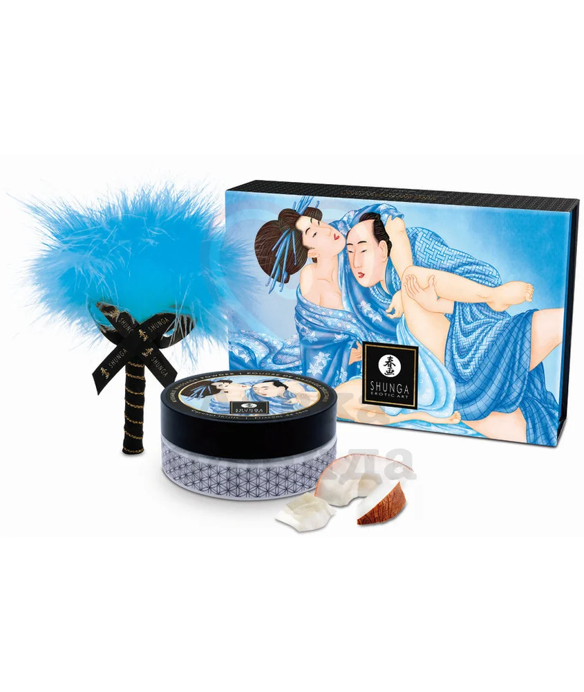 С пудрой Shunga Kissable Massage Powder Кокосовое волнение, предназначенной для сухого массажа, вы превратите любовную игру в изысканное наслаждение десертом со вкусом и ароматом спелого кокоса. Наносите пудру на тело партнера и слизывайте ароматный порошок с его тела, либо игриво распределяйте пудру по коже с помощью кисточки, сделанной из невесомых перьев, поддразнивая и возбуждая каждым прикосновением. Порошок хорошо впитывает влагу, поэтому им можно посыпать простыни, чтобы избежать лишней влажности во время близости и некомфортных "мокрых" ощущений. В составе пудры нет сахара.