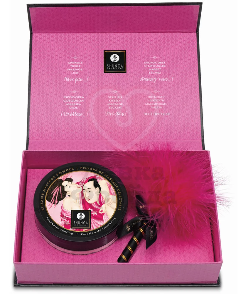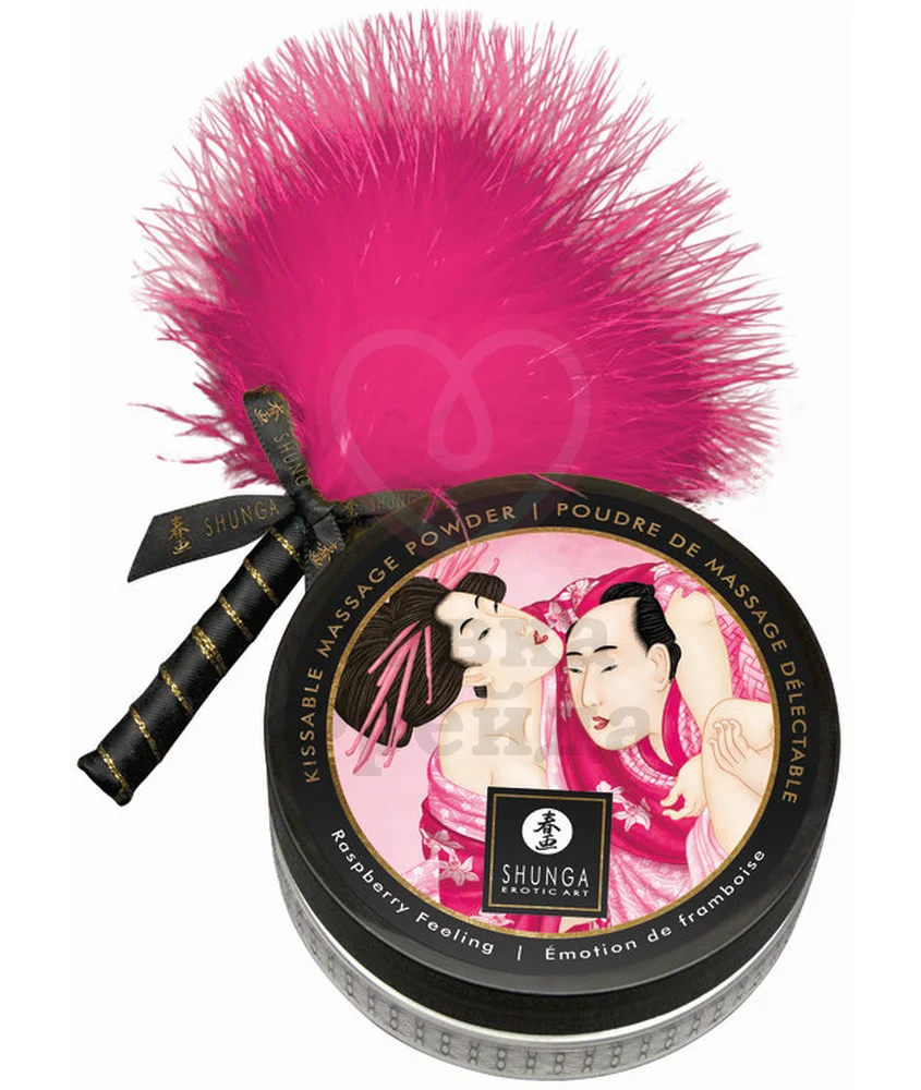 Массажная пудра Shunga Kissable Massage Powder Малиновое чувство превращает любовную игру в наслаждение восхитительным десертом со вкусом спелой малины - посыпьте эрогенные зоны вашего партнера порошком и распределите по телу нежной перьевой кисточкой, дразня и лаская кожу. Также вы можете попробовать партнера на вкус, слизывая ароматную пудру с его тела. Невесомый порошок не содержит сахара в составе, он хорошо подсушивает кожу, удаляя с неё лишнюю влагу. За счёт этого, порошок можно наносить не только на партнера, но и посыпать им простыни, чтобы избежать неприятного ощущения сырости во время близости.