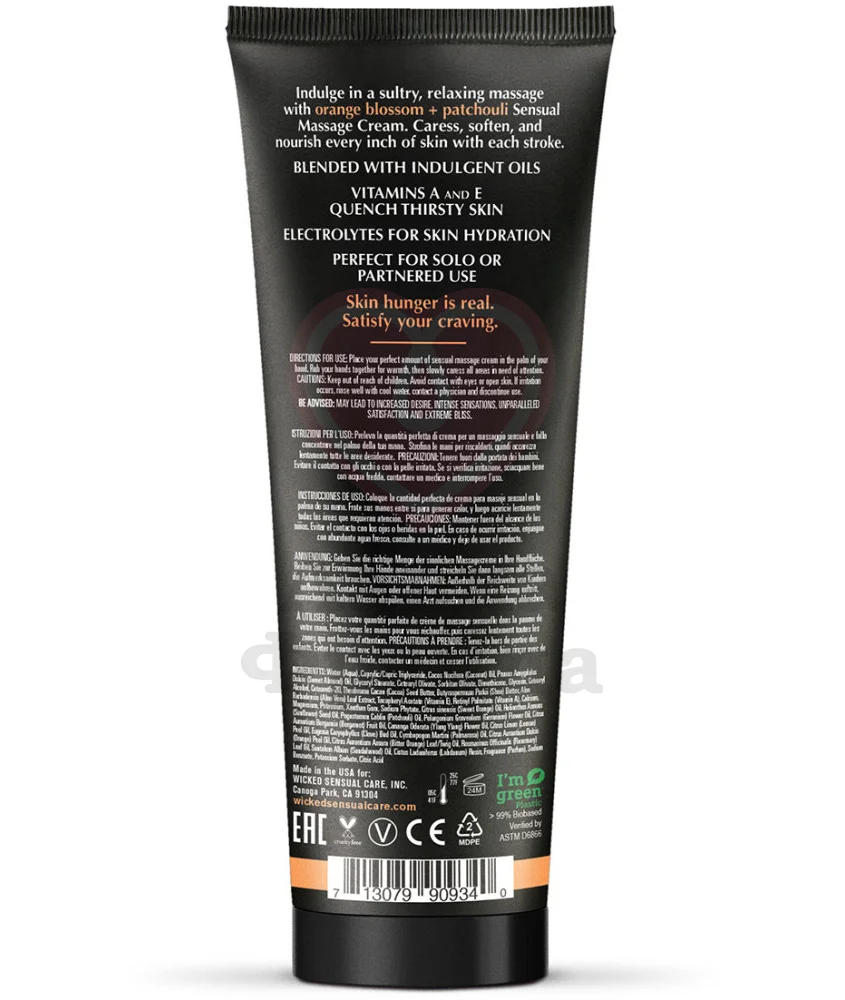 Воздушный крем Wicked Orange Blossom Patchouli безупречно подходит для расслабляющего массажа или прелюдии. Для этого необходимо нанести нужное количество средства на ладошки и, согревая, потереть их друг о друга, а затем нежными, плавными движениями начать втирать крем в кожу партнера.