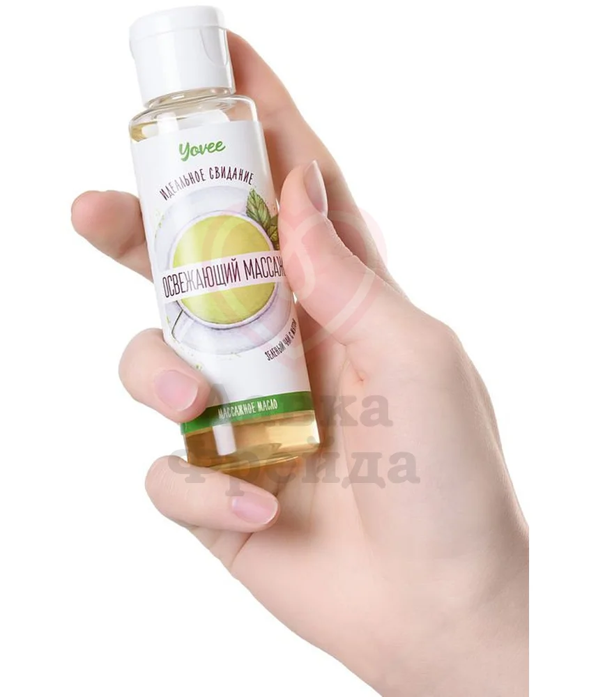 Масло Освежающий массаж наполнит прелюдию атмосферой бодрости, насыщенную ароматами зеленого чая и мяты. Масло необходимо налить в ладошки и чуть-чуть его растереть, а затем нанести на тело партнера. Нежными массирующими движениями масло можно втирать в кожу ладонями или обнаженным телом, дразня и возбуждая каждым прикосновением. Натуральные масла в составе средства - миндальное и виноградной косточки, бережно ухаживают за кожей, увлажняя ее, насыщая полезными элементами, повышая её эластичность и упругость. Нельзя использовать в качестве смазки для проникающего секса.