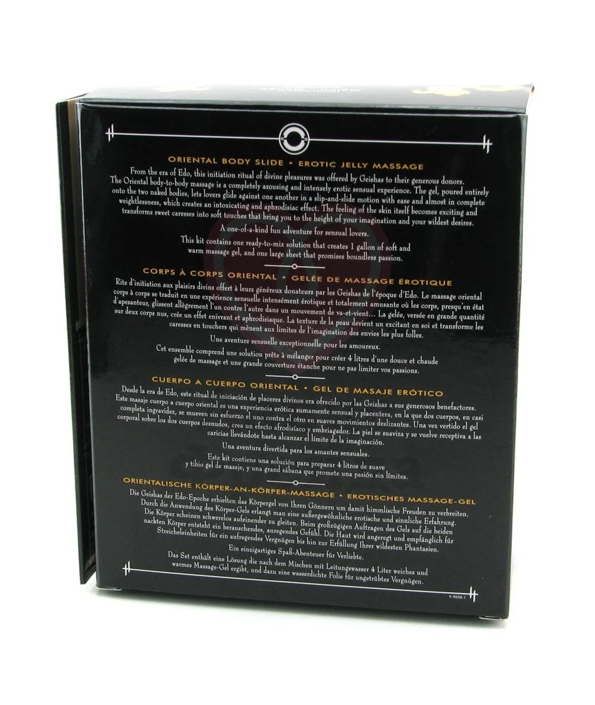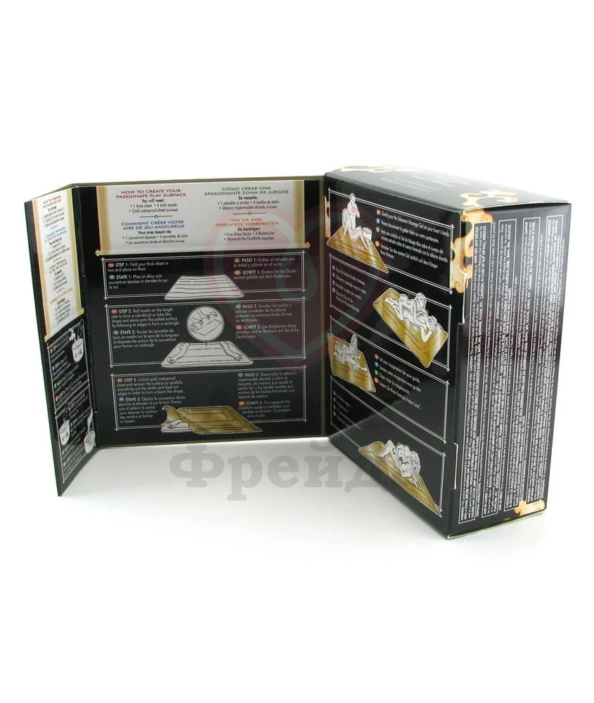 Для приготовления смеси Вам потребуется 3,5 литра теплой воды, из которых получится 4 литра геля. Поочередно вылейте туда оба флакона из набора и хорошенько перемешайте. Вуаля! Густой, невероятно ароматный гель для любви готов. Скатайте 4 невысоких валика из одеял или пледа и распределите на краях кровати. Должно получиться подобие невысоких бортиков. Это нужно для того, чтобы во время процесса гель не стекал, поддерживая постоянное скольжение. Поверх расстелите золотое покрывало и приглашайте партнера испытать незабываемое удовольствие, которое запомнить Вам надолго.