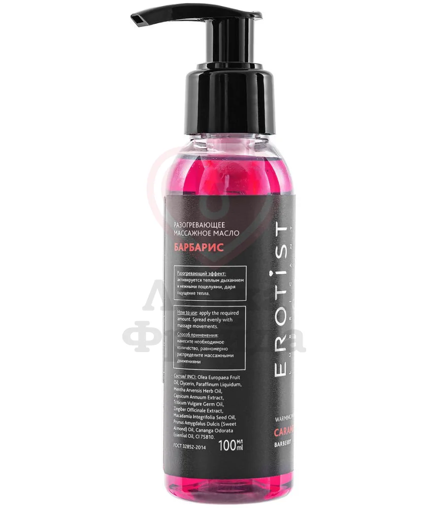Разогревающее массажное масло Erotist Caramel Club имеет кисло-сладкий вкус и запах барбарисок - сладость, знакомая всем с детства. Конфетный аромат добавит любовной игре большей игривости и чувственности, а разогревающий эффект заодно разогреет и вашу чувственность - нанесите масло на ладони и начинайте аккуратно растирать, и уже через несколько секунд вы почувствуете нарастающее ощущение жара.