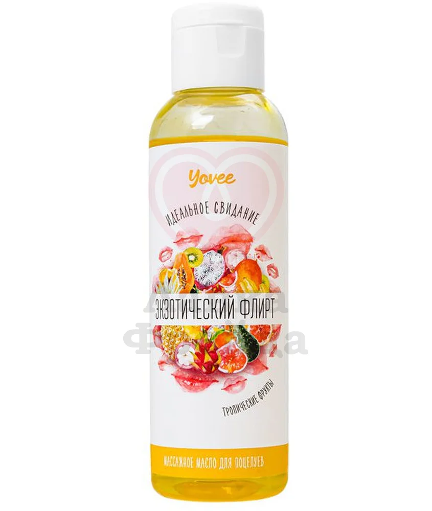 Массажное масло Экзотический флирт подходит не только для массажа, но и для поцелуев - средство необходимо тонким слоем нанести на кожу партнера, а затем нежными, чувственными движениями массировать его ладонями, или обнаженным телом, или сразу слизывать сладкую жидкость прямо с кожи, дразня и провоцируя каждым прикосновением и движением язычка. Чудесный вкус и запах тропических фруктов придется по вкусу обоим любовникам, а от тепла кожи аромат раскроется еще роскошнее. Обратите внимание, что масло является концентратом, поэтому его нельзя пить прямо из флакона. Нельзя использовать средство в качестве смазки для проникающего секса.