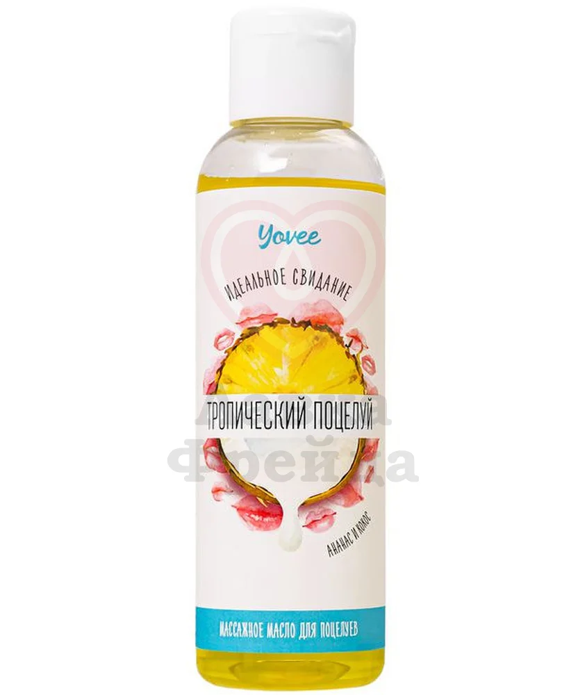 Массажное масло Тропический поцелуй подходит не только для массажа, но и для поцелуев - средство необходимо тонким слоем нанести на кожу партнера, а затем нежными, чувственными движениями массировать его ладонями, или обнаженным телом, или сразу слизывать сладкую жидкость прямо с кожи, дразня и провоцируя каждым прикосновением и движением язычка. Чудесный вкус и запах ананаса и кокоса придется по вкусу обоим любовникам, а от тепла кожи аромат раскроется еще роскошнее. Обратите внимание, что масло является концентратом, поэтому его нельзя пить прямо из флакона. Нельзя использовать средство в качестве смазки для проникающего секса.