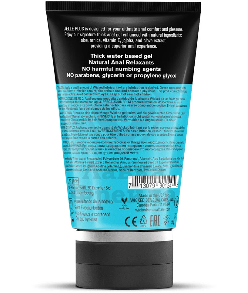 Лубрикант Jelle Plus имеет в своей формуле натуральные релаксанты, которые эффективно расслабляют и успокаивают нервные окончания ануса, подготавливая их к анальному сексу. Натуральные растительные экстракты и масла в составе дополнительно питают кожу и ускоряют заживление микротравм. Формула на водной основе безопасна для презервативов и секс-игрушек, сделанных из любых материалов. Не имеет цвета, вкуса или запаха.