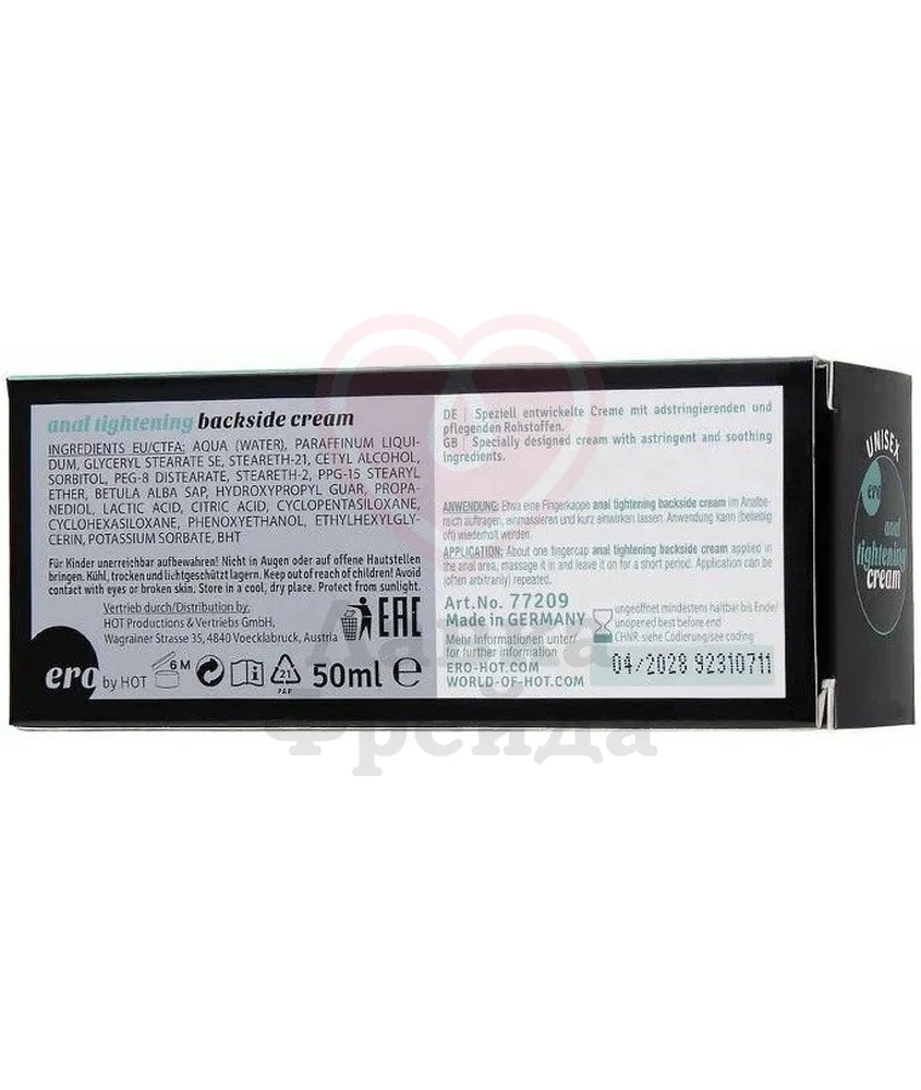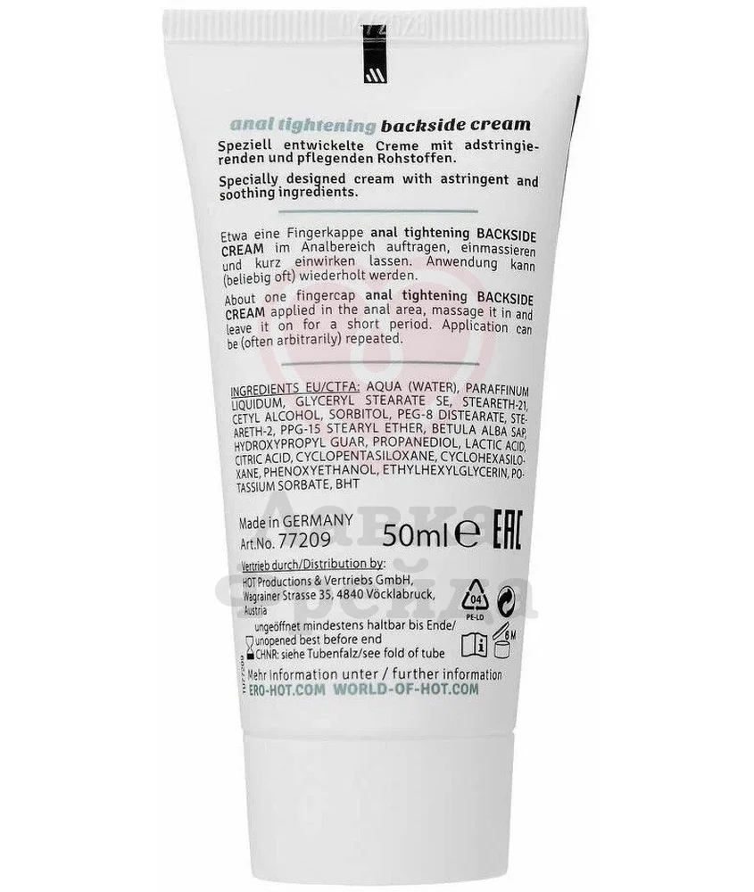 Интимный крем Тайтинг бережно ухаживает за нежной анальной зоной, смягчая кожу и защищая её от появления микротравм и прочих мелких повреждений. В составе средства находится сок белой березы, который помимо увлажнения, дарит легкий сужающий, вяжущий эффект, что обеспечит более яркие ощущения от анального секса. Не является лубрикантом. Чтобы использовать, небольшое количество крема необходимо нанести на анус и кожу вокруг него, а затем аккуратными массирующими движениями втирать до полного впитывания.