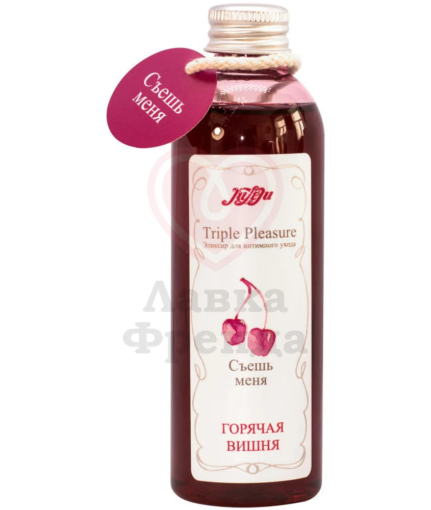 Съедобный лубрикант Juleju Triple Pleasure имеет сладкий вкус и аромат горячей вишни, а также обладает лёгким согревающим эффектом ― от дыхания и поцелуев смазка слегка нагревается, вызывая приток крови к интимной области, за счёт чего обостряются все ощущения от прикосновений.